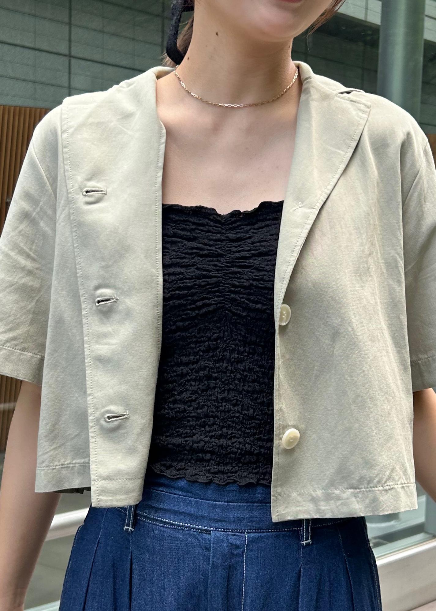 ショート丈ですがおへそ隠れるくらいの長さがあるのでボタンを留めて一枚でトップス使いもできちゃいます!