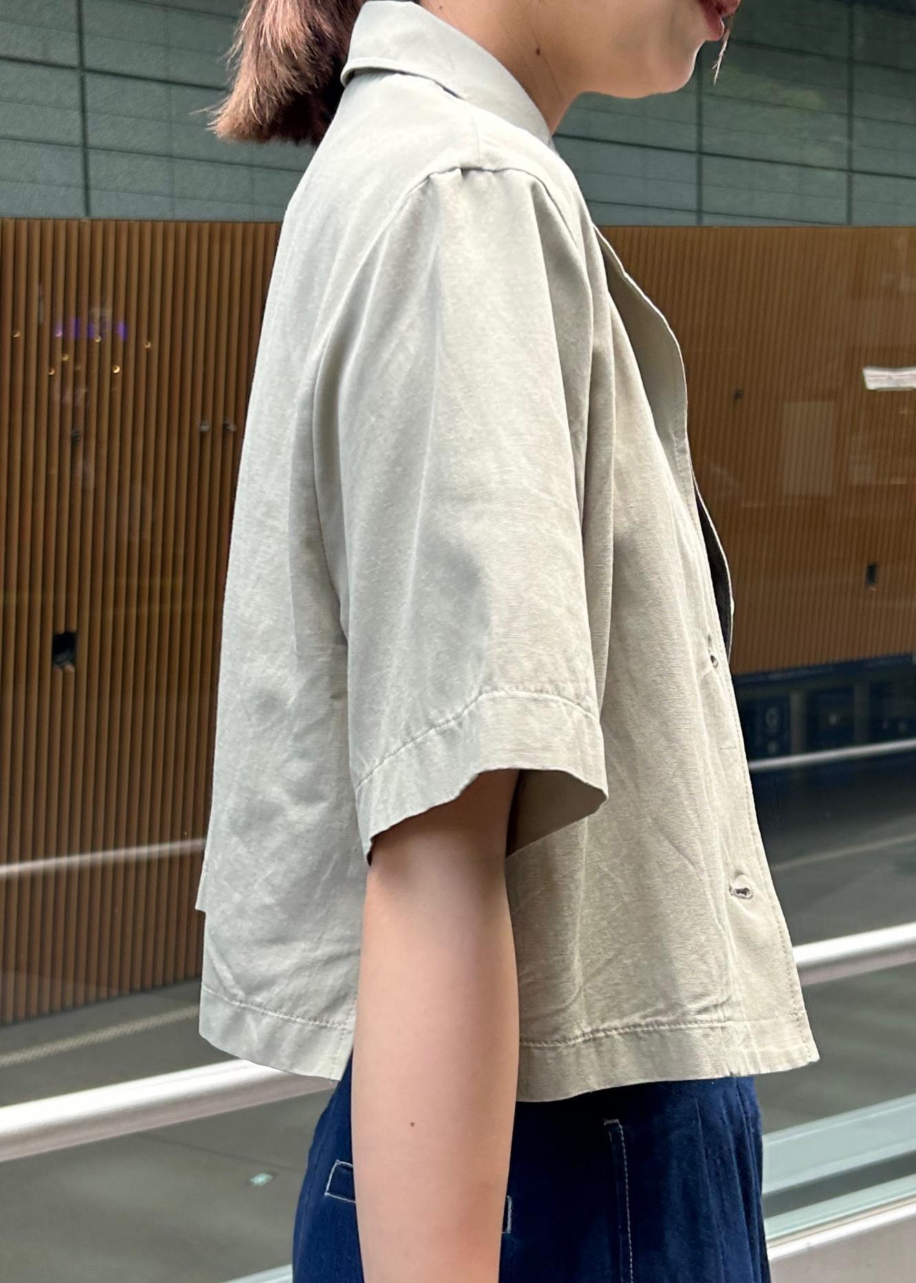 開襟リネンライクシャツ