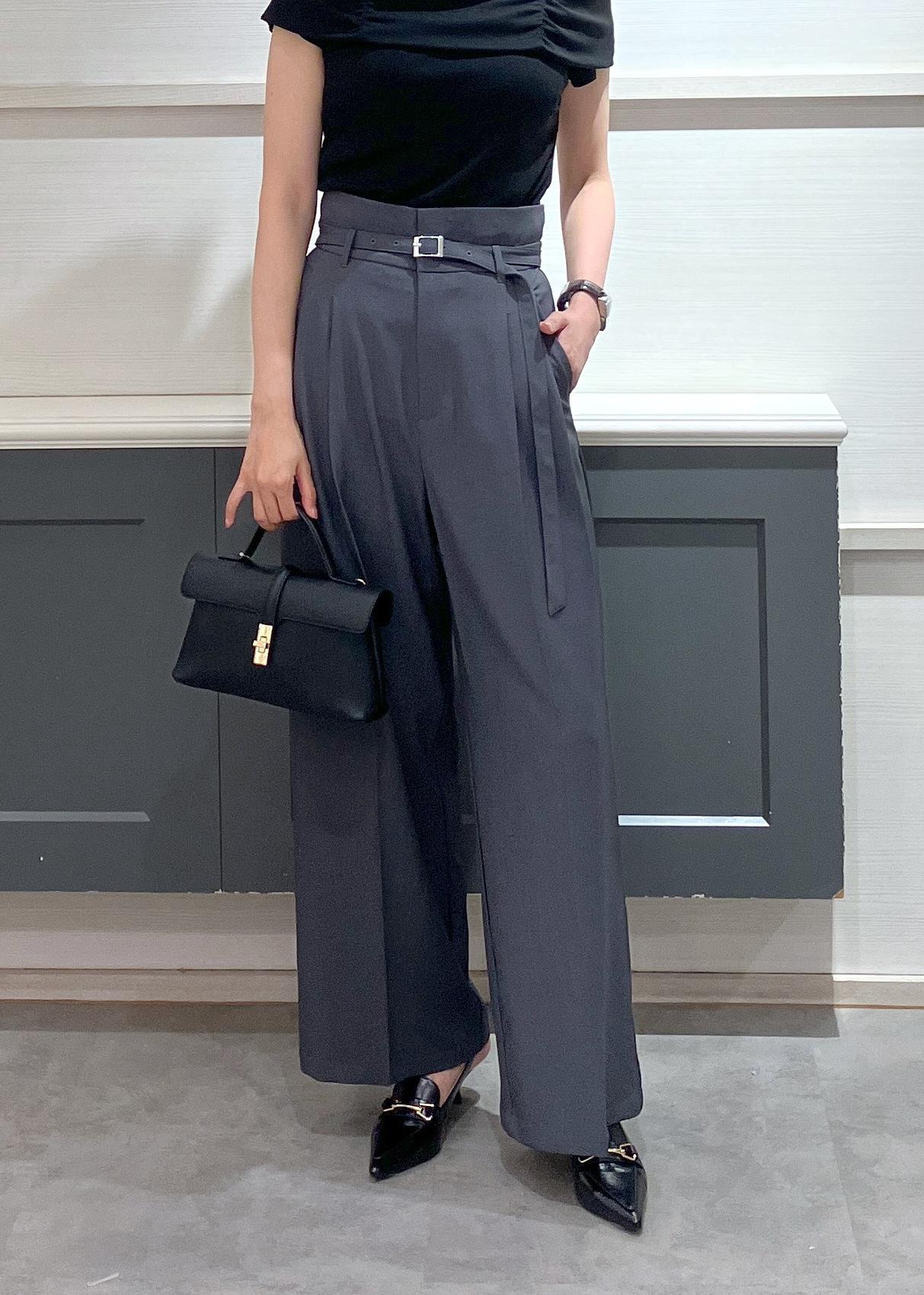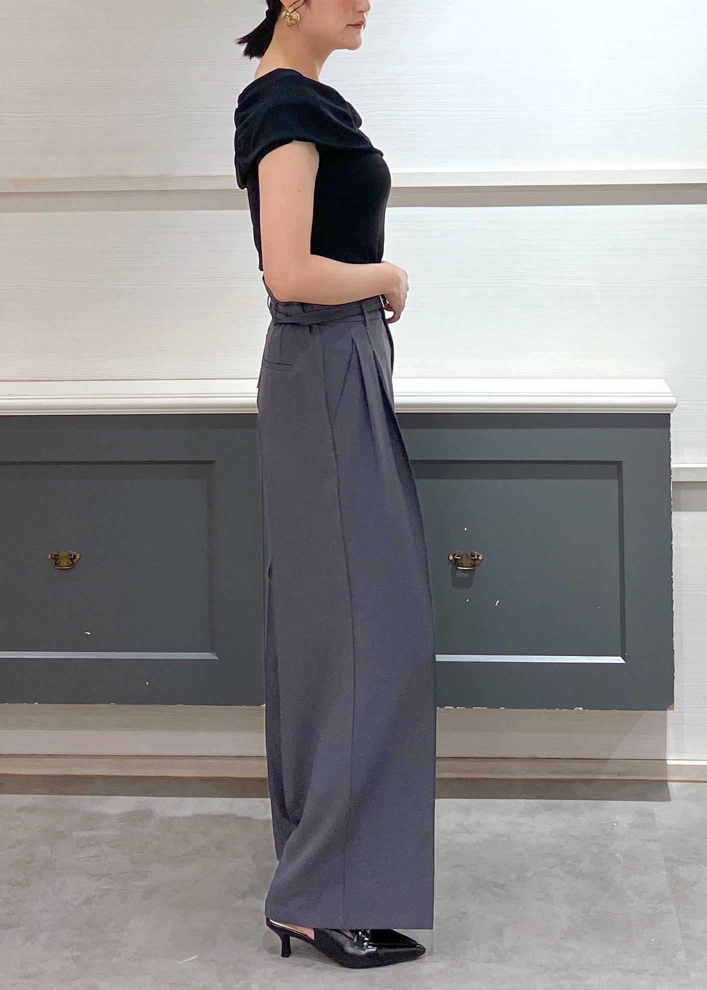 VIS【新色追加】【防シワ/接触冷感】ベルトディテールタックワイドスラックスパンツチャコール / M¥6,589レビュー身長168センチで足首にかかる着丈です!