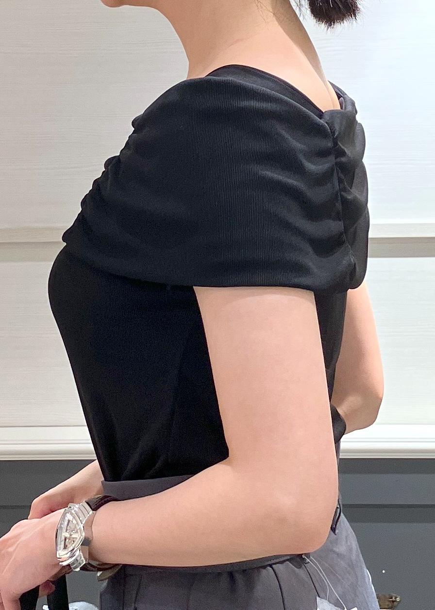 VISオフショルダーテレコカットソープルオーバーブラック / F¥4,389レビュー骨格ストレートで腕周りが気になる体型ですが、気になる二の腕をスッキリ見せてくれるので嬉しいです♡