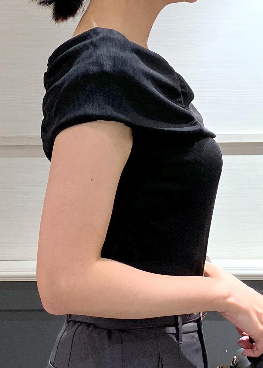 生地は伸びがあるので着やすく、オフショルも上に上がってこないので快適に着用出来ます! -