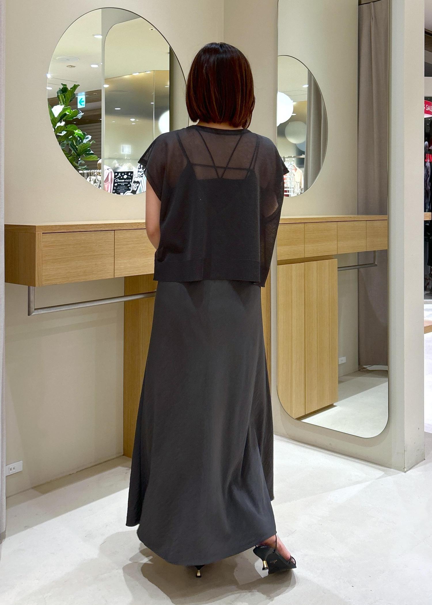 アウトレットVISバイヤス仕立てナローキャミワンピースチャコール / F¥3,076レビュー151cm、足首が見える長さです。