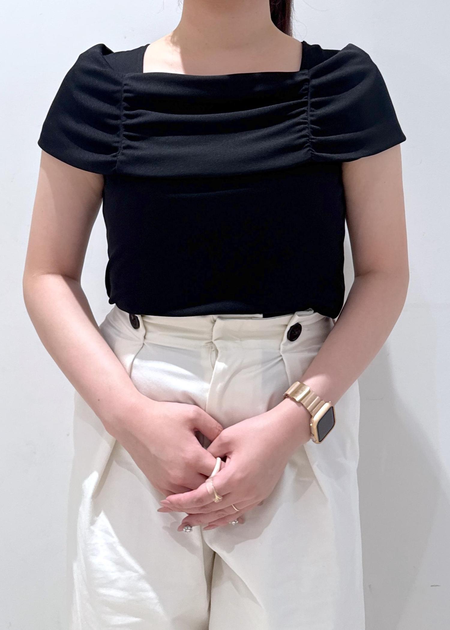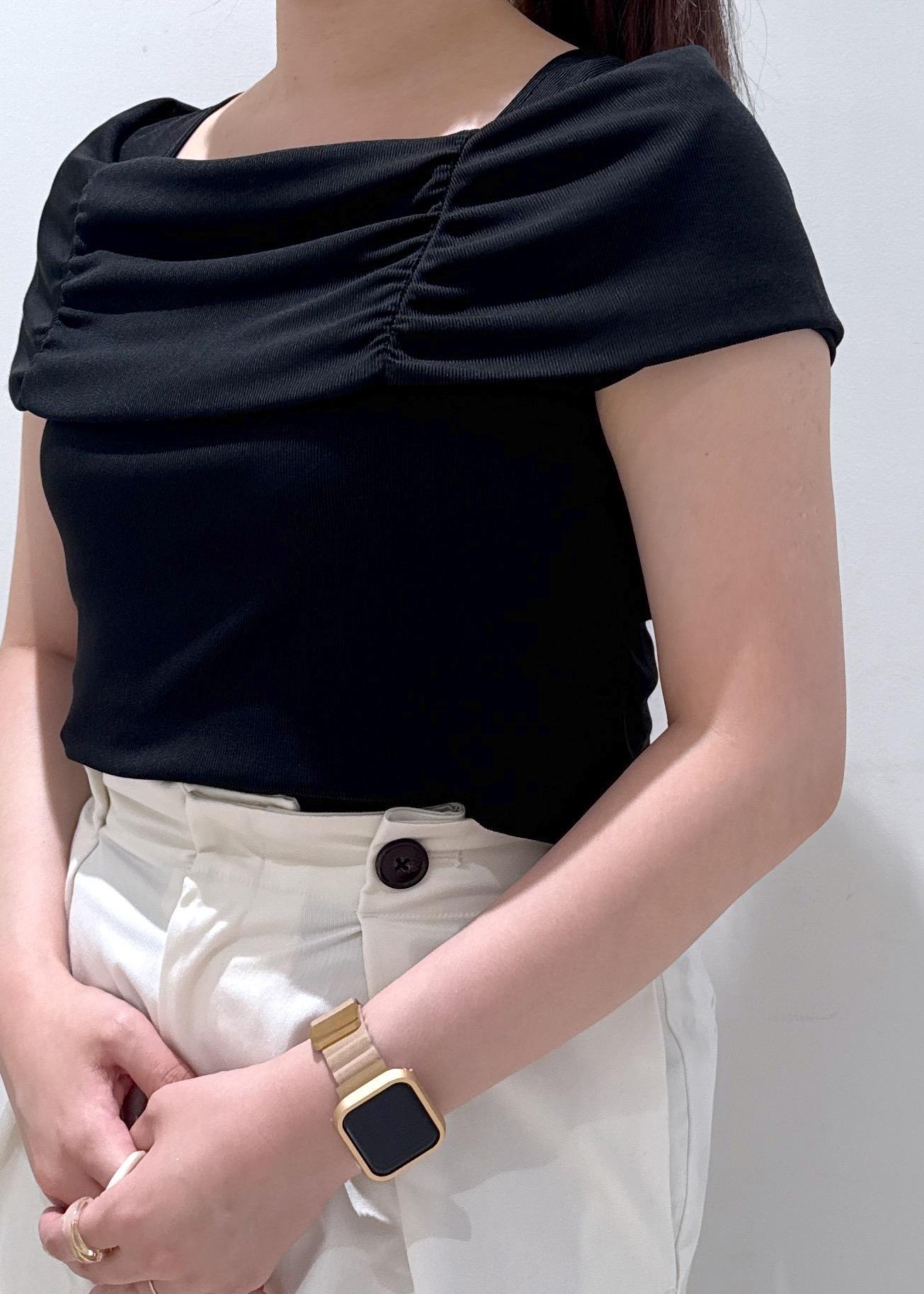 下着の紐も見えず、オフショルの部分がズレることもなかったです。身長157の私ですがお腹まわりをカバーできる着丈ではあったので、インでもアウトでもどちらでも着用することできます。 -