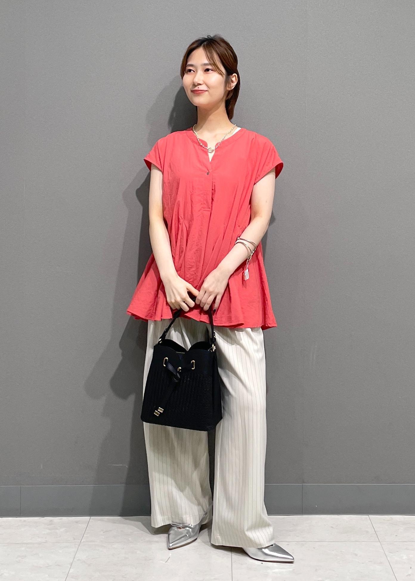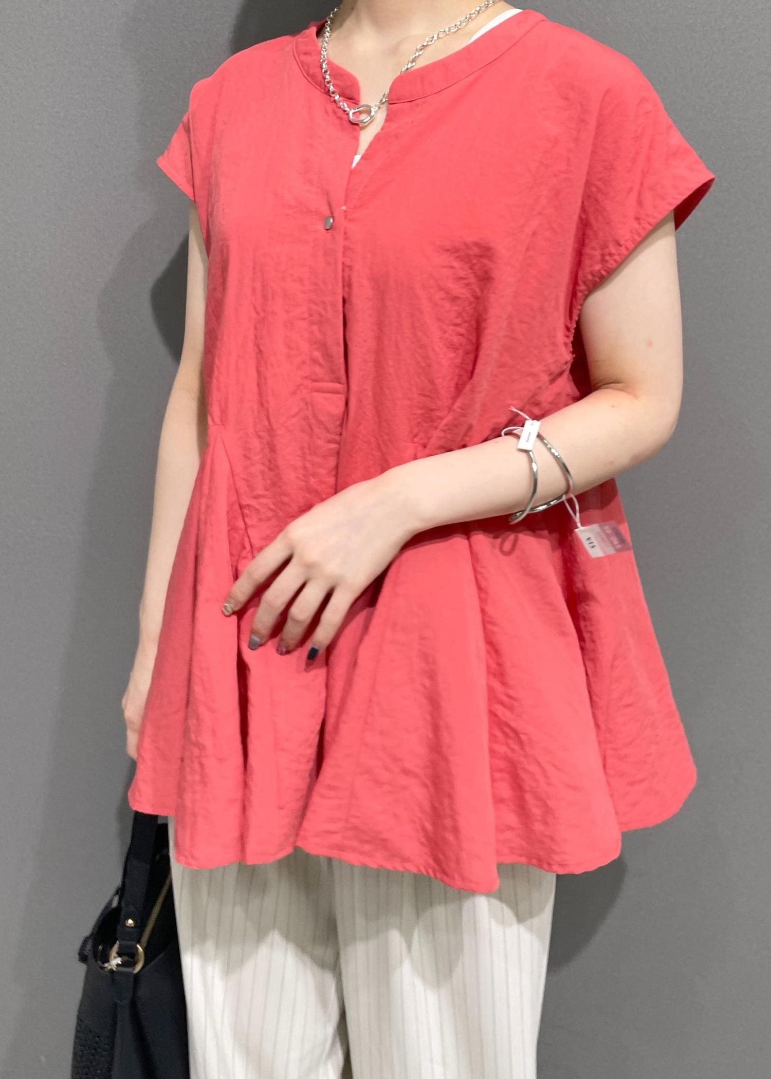 アウトレットVIS【防シワ/洗える】スキッパーフレアブラウスレッド系 / F¥3,293レビュー150cmでヒップがしっかり隠れる丈でした。