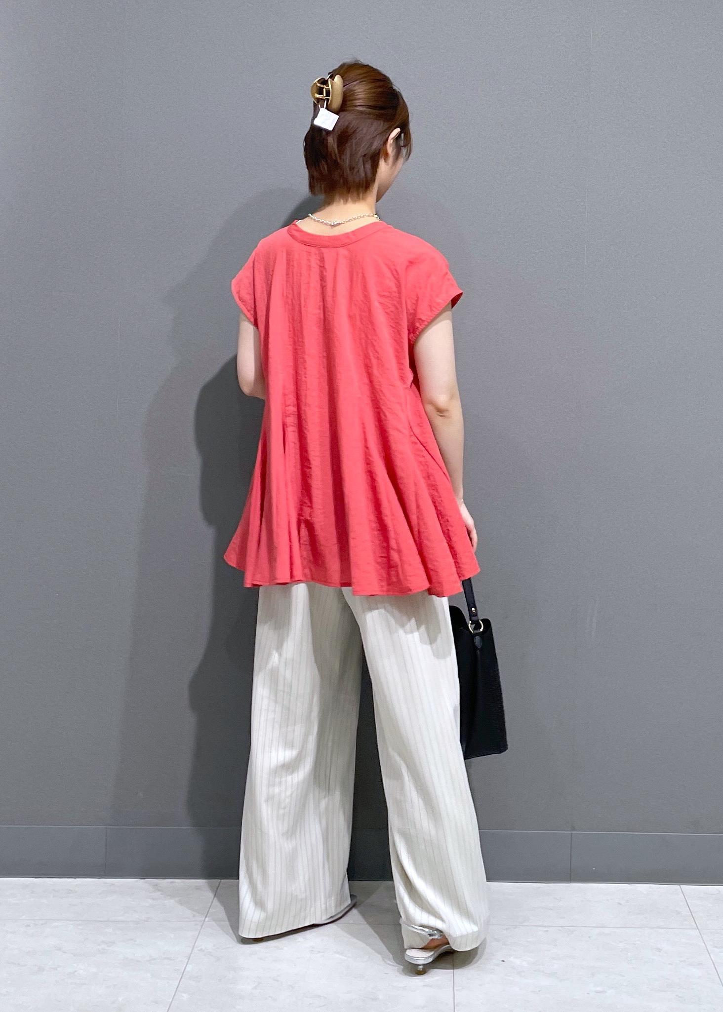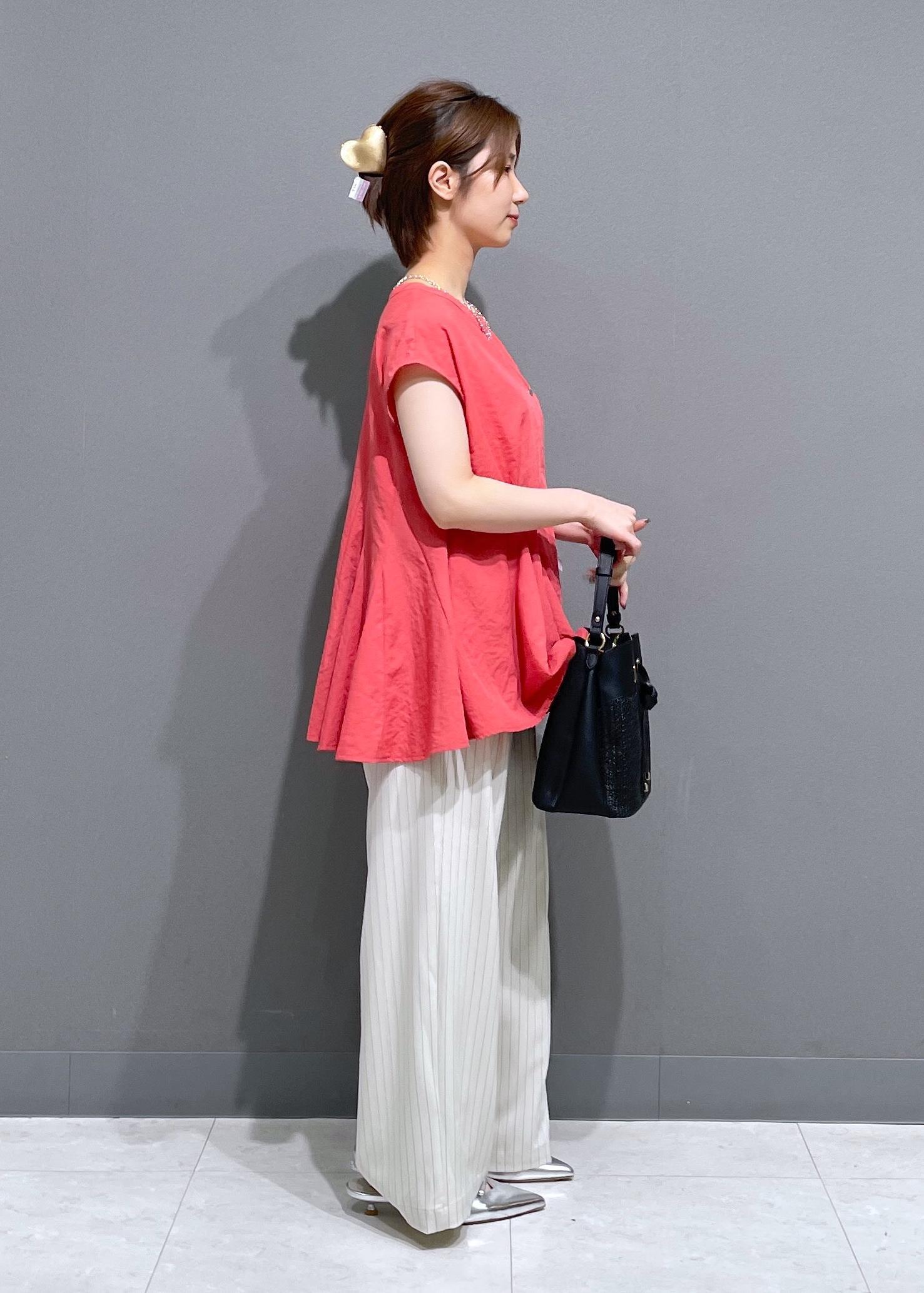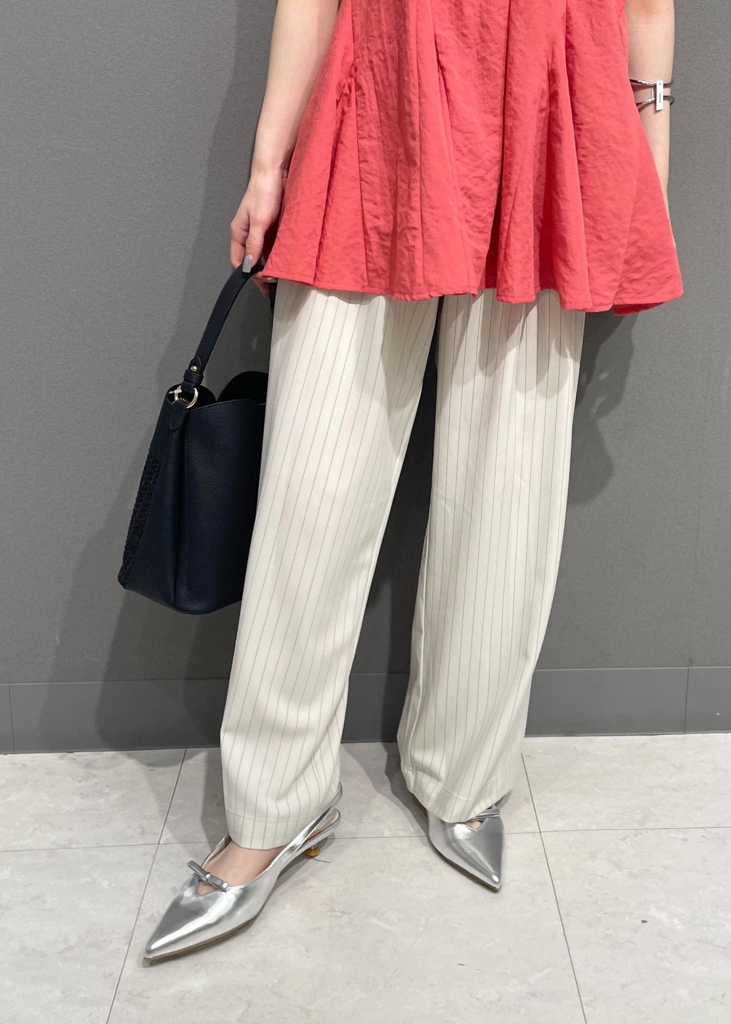 アウトレットVIS【接触冷感/UVケア】ピンストライプリラックスワイドパンツキナリ / S¥2,636レビュー150cmでSサイズを着用してヒールを合わせてギリギリ床につかない丈でした。