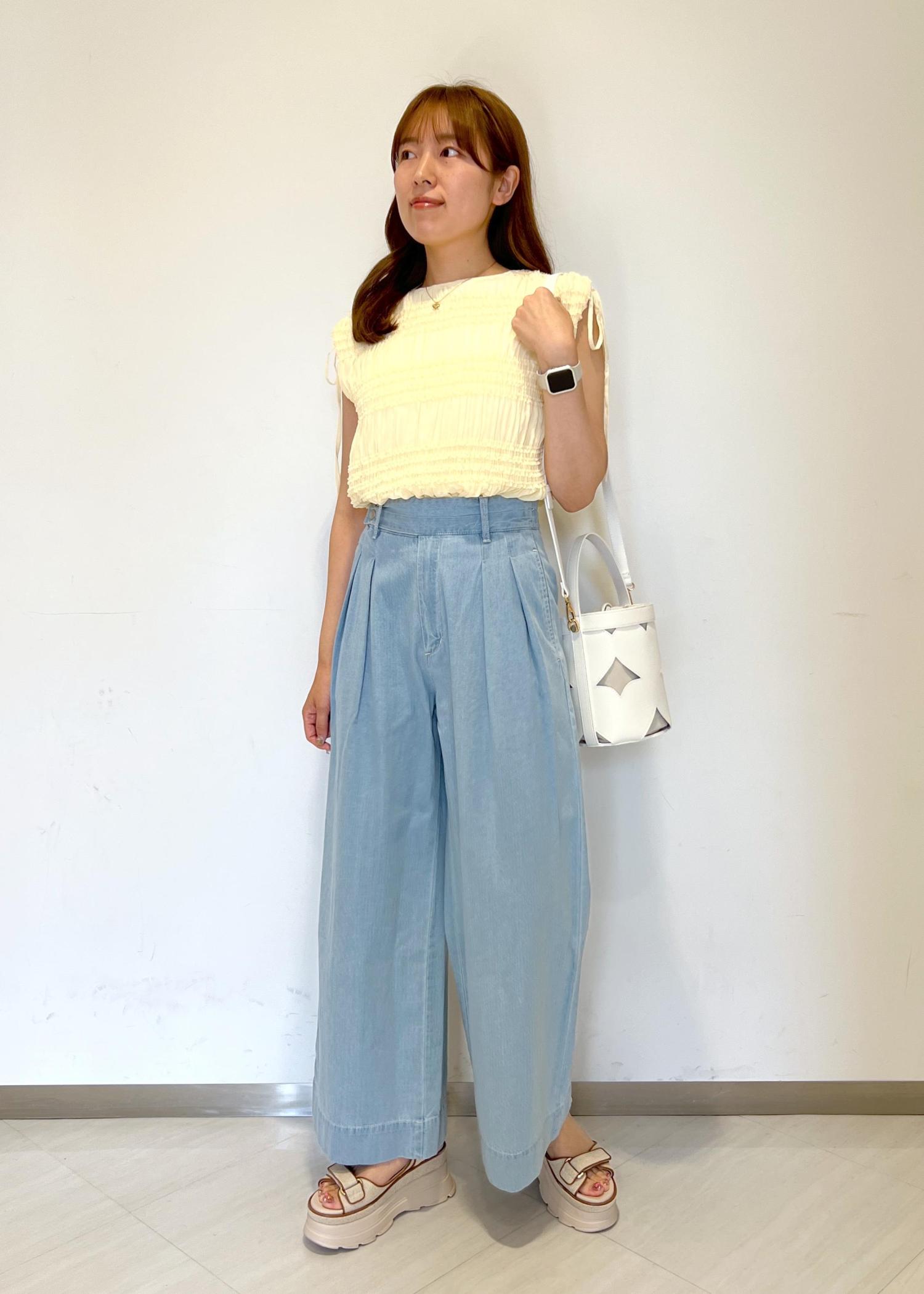 アウトレットVISタックデザインリラックスデニムパンツサックス / M¥3,460レビュー身長164cm、Mサイズを着用しています!ぺたんこ靴でも床につかないほどの丈感です。