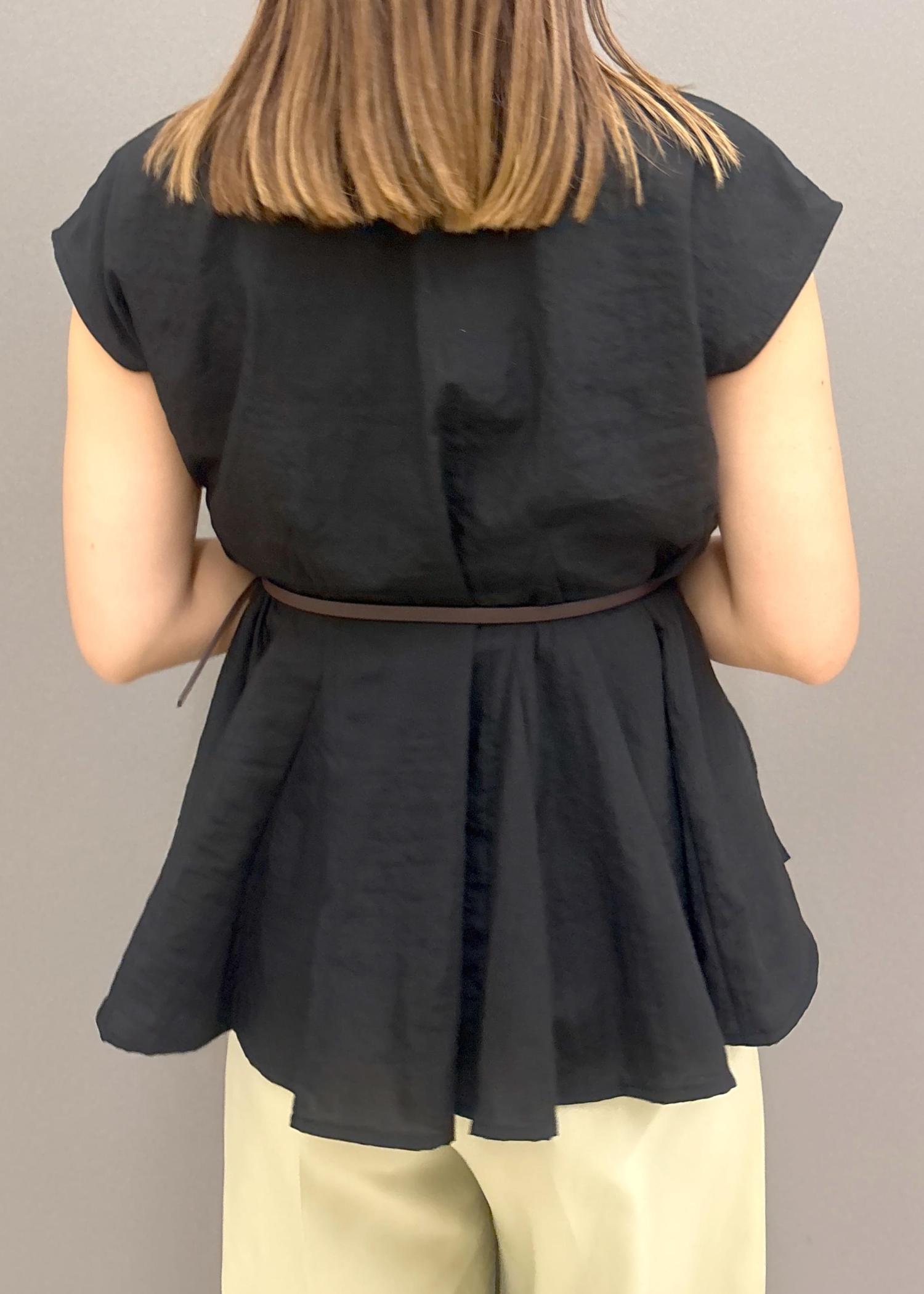 アウトレットVIS【防シワ/洗える】スキッパーフレアブラウスブラック / F¥3,293レビューシワになりにくくお手入れ楽チン◎