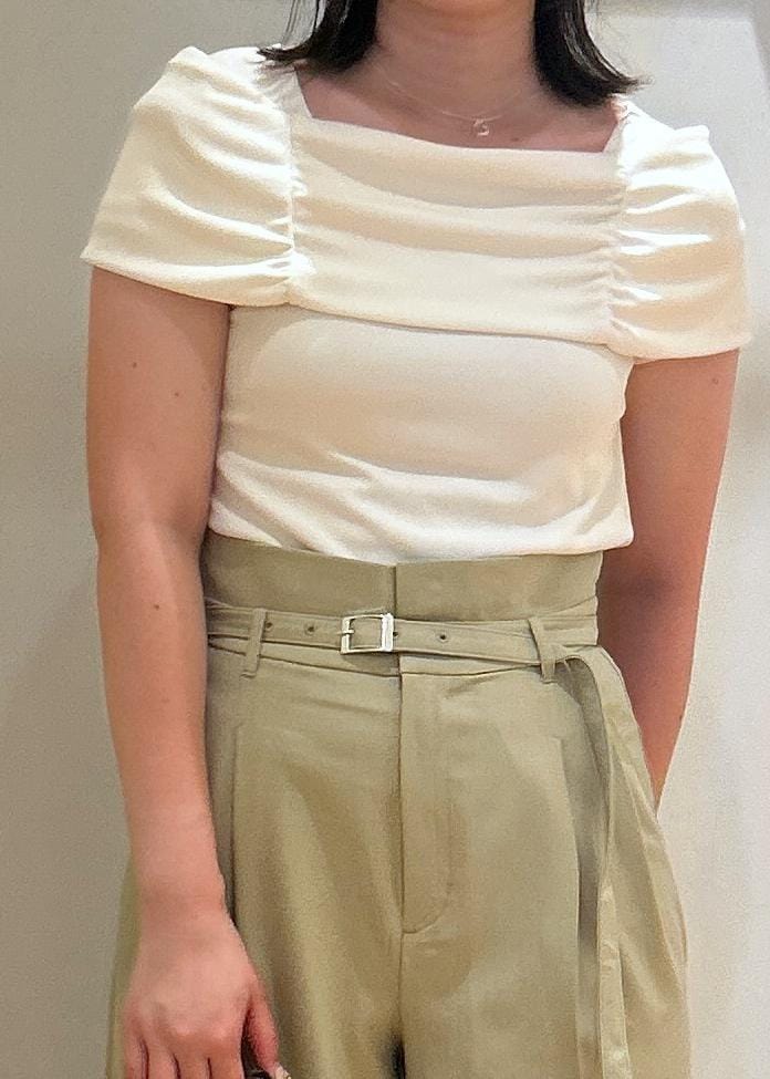 オフショルは肩が見えすぎないデザインなので、着やすく華奢見えしますよ!