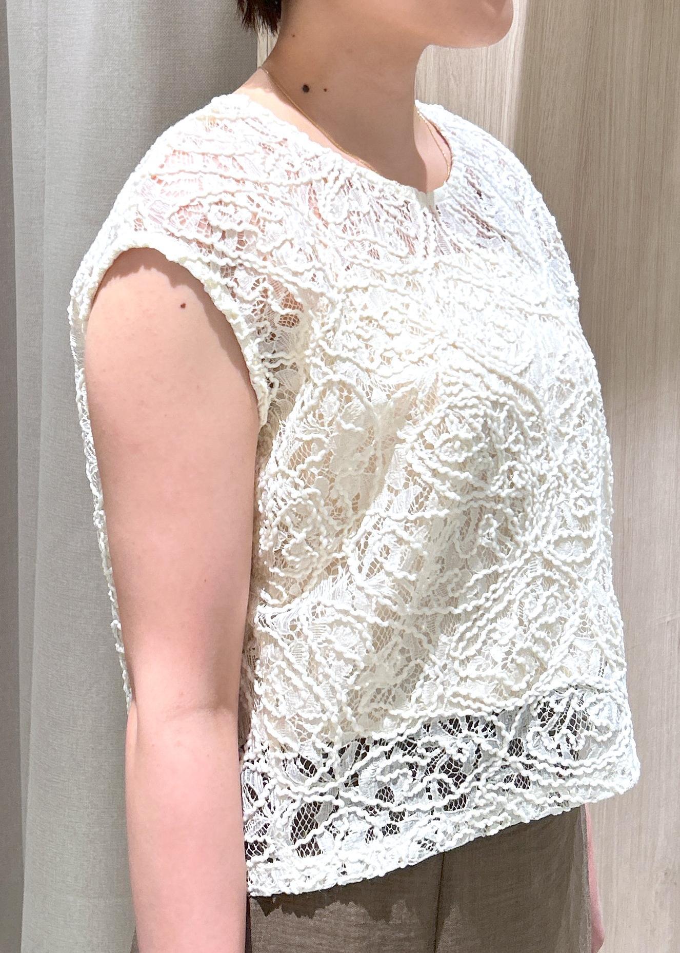 アウトレットVISコードレースシアーノースリーブプルオーバーオフホワイト / F¥4,391レビュー二の腕が少し隠くれるフレンチスリーブです。