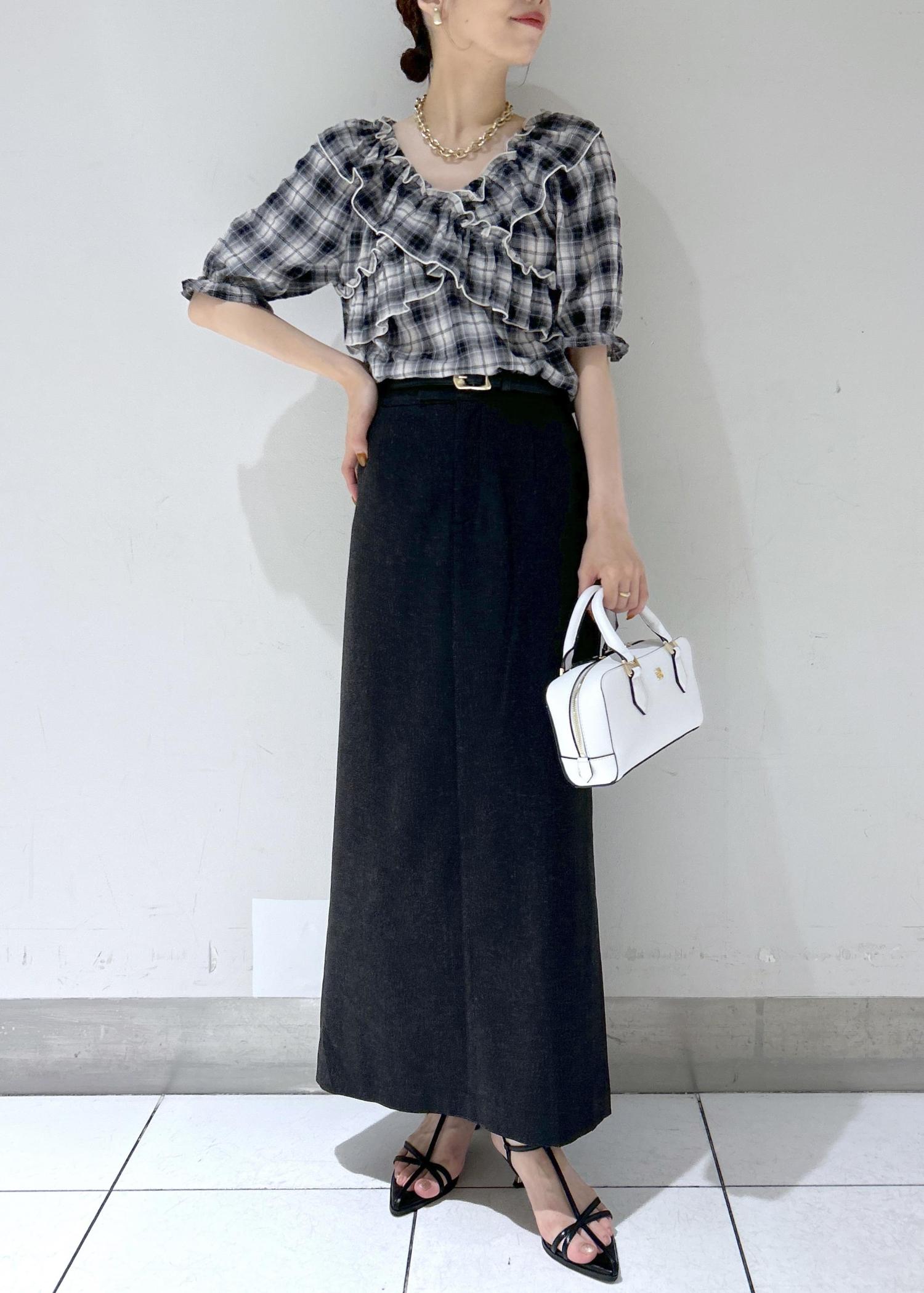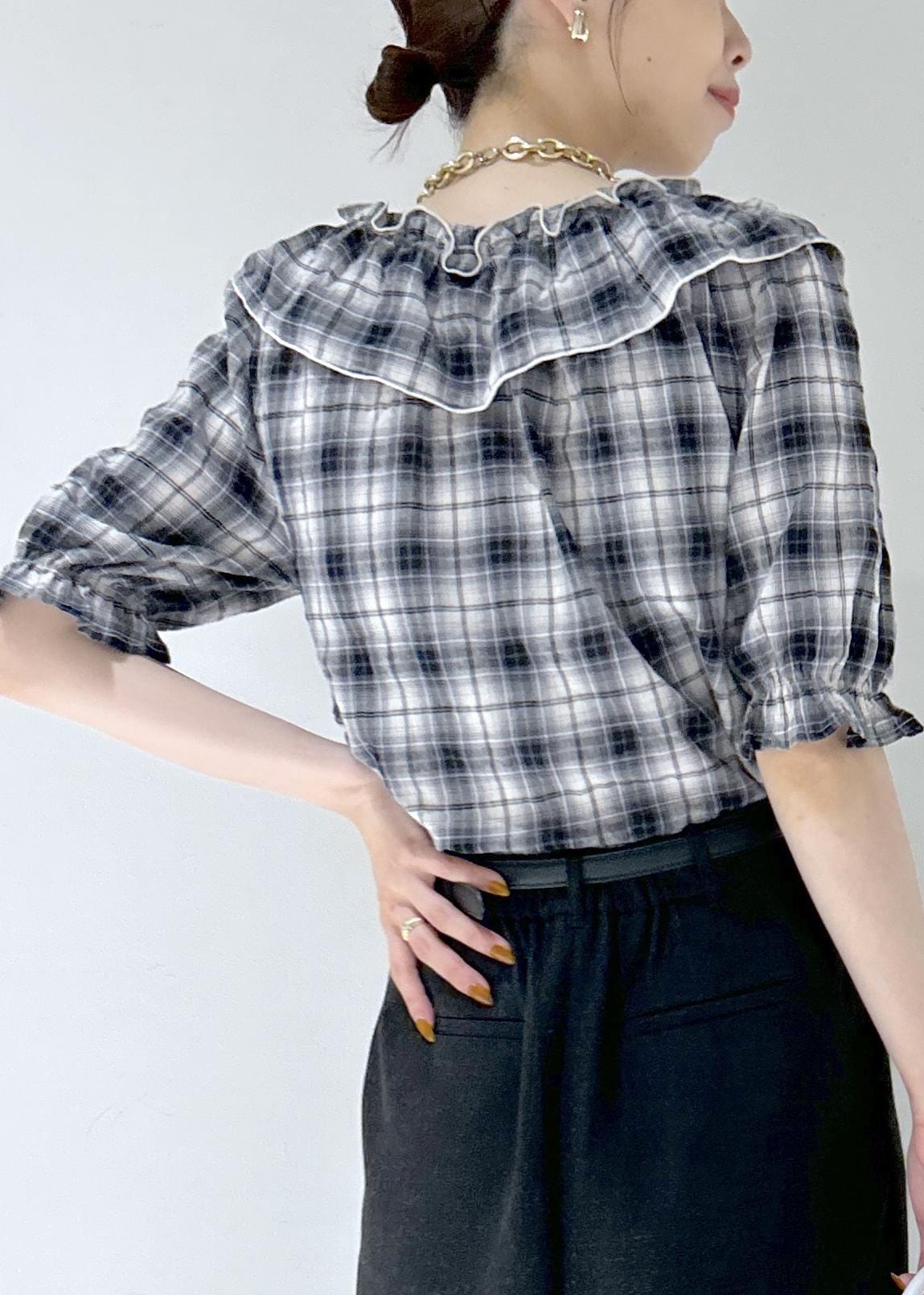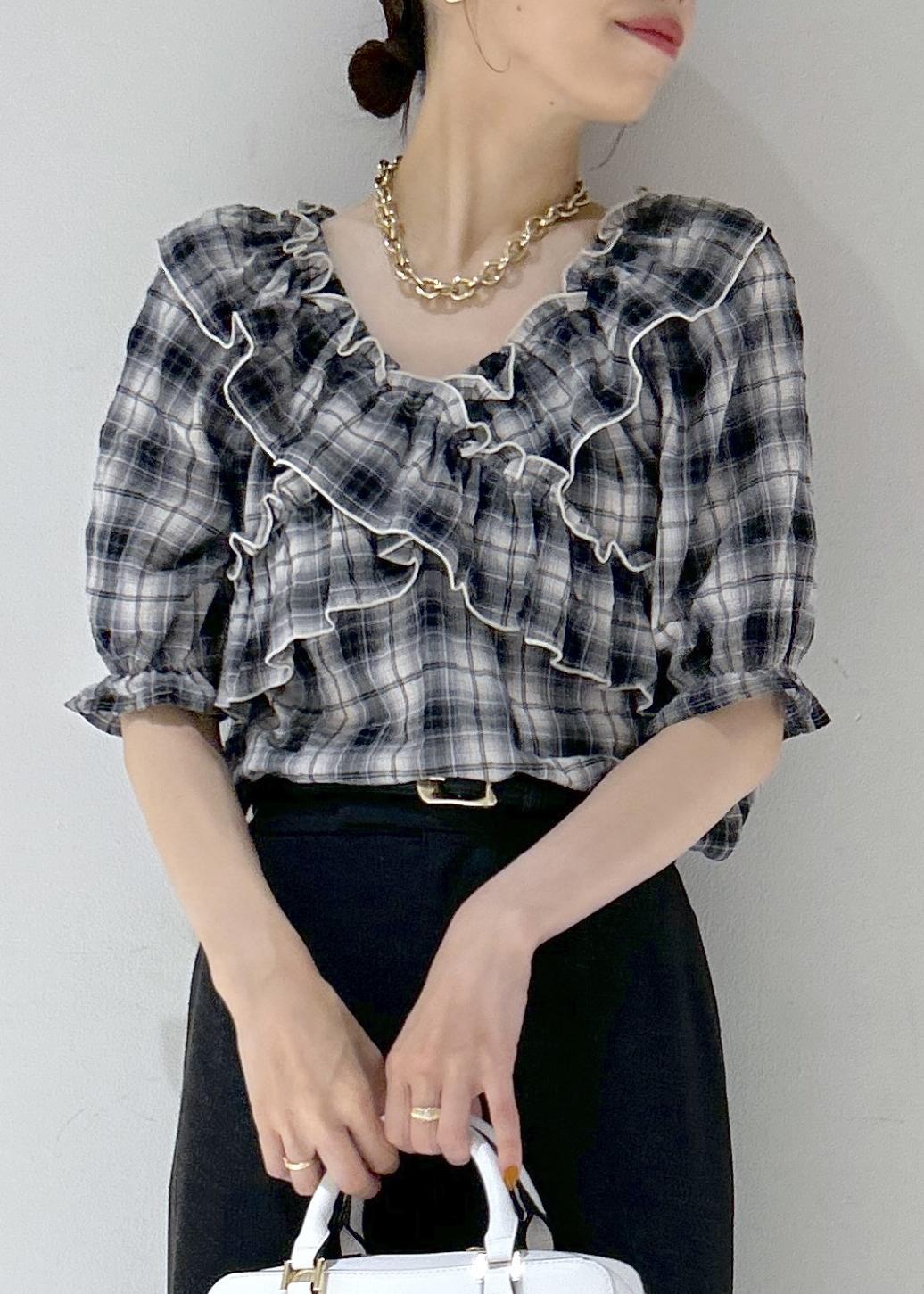 VIS【2WAY】フリルチェックオフショルブラウスブラック系 / F¥6,589レビューリアルバイしたブラウス。