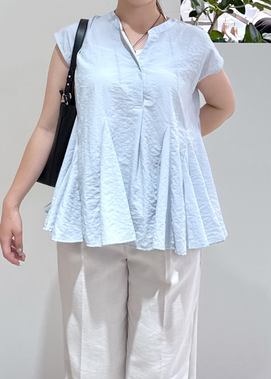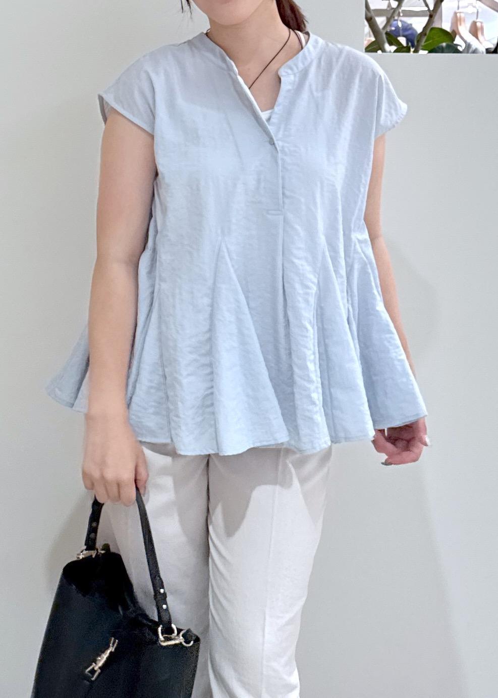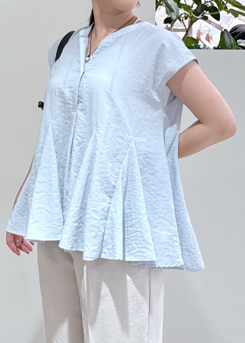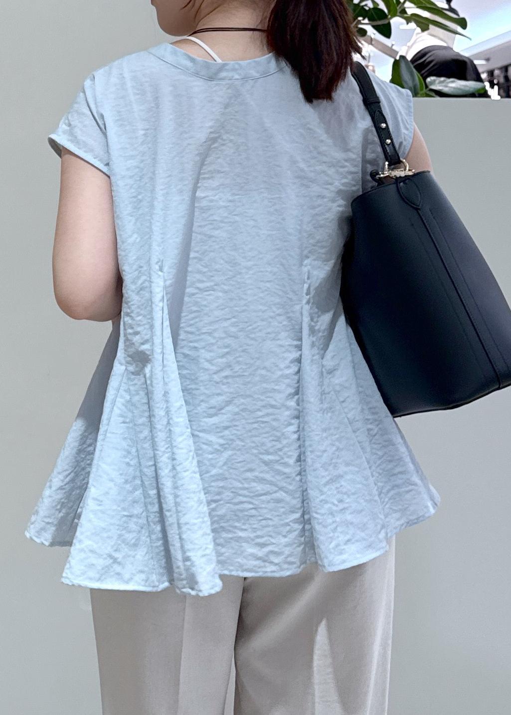 アウトレットVIS【防シワ/洗える】スキッパーフレアブラウスサックス / F¥3,293レビュー裾に向かってふんわりと広がるペプラムシルエットで、