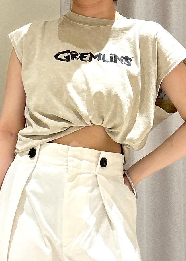 VIS【グレムリン】VIS別注 ビンテージ風レタリング&フォトTシャツベージュ / F¥4,389レビューグレムリンのコラボTシャツで、前はロゴ、後ろはプリントになっていて、つぶらな瞳が可愛いです。