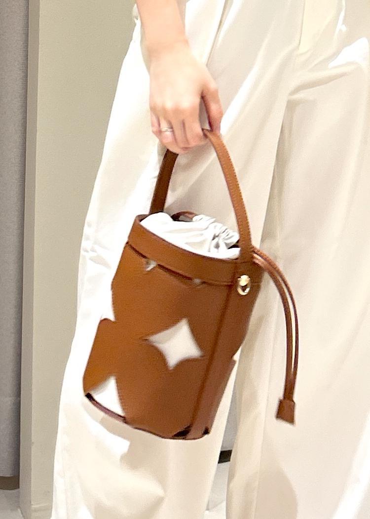 アウトレットVISカットワーク2WAYバッグブラウン系 / F¥4,843レビュー筒状のバッグで出し入れもしやすく、中も大容量なので普段荷物が多い方でも使えます。長財布も入る高さです。