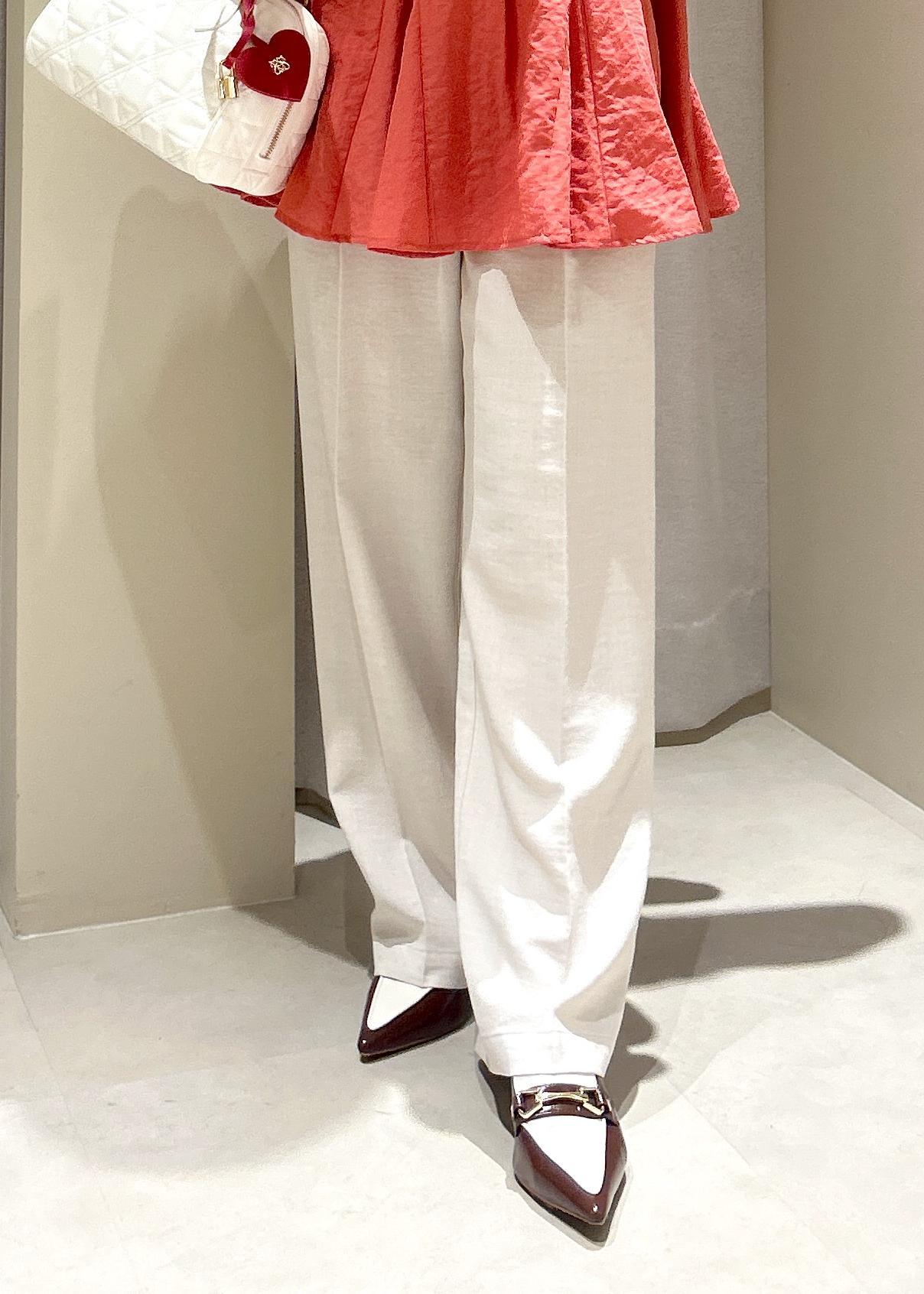 VIS【美easy】ワンタックワイドスラックスパンツ/洗えるキナリ / S¥5,489レビュー薄目の生地でサラッと涼しく着れます。ウエストはボタンで調節可能です。