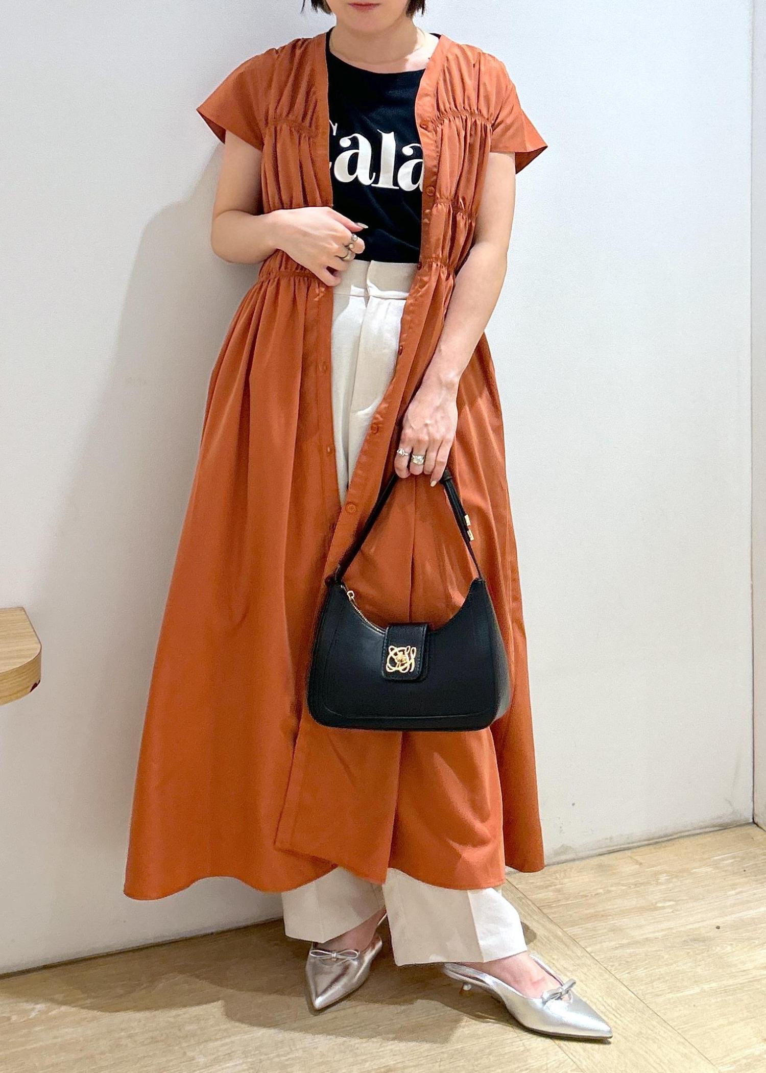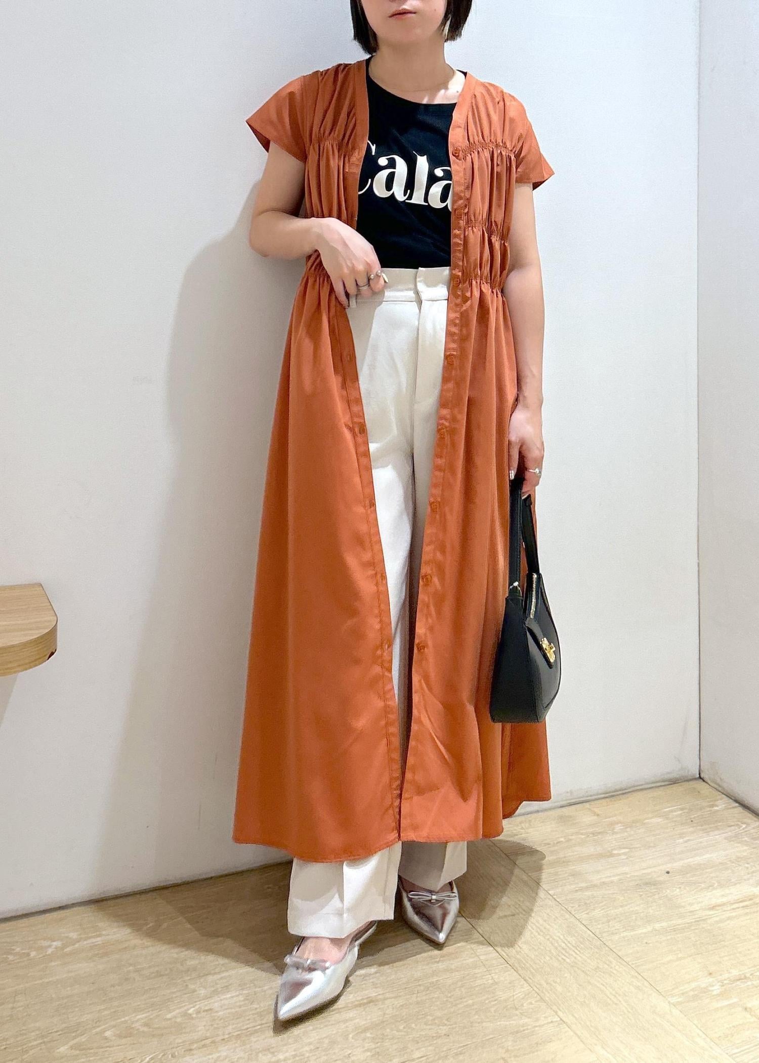 アウトレットVISシャーリングデザインワンピース【WEB限定サイズ】ダークブラウン系 / F¥3,955レビュー1枚でも、羽織としても使えるシャーリングワンピース。