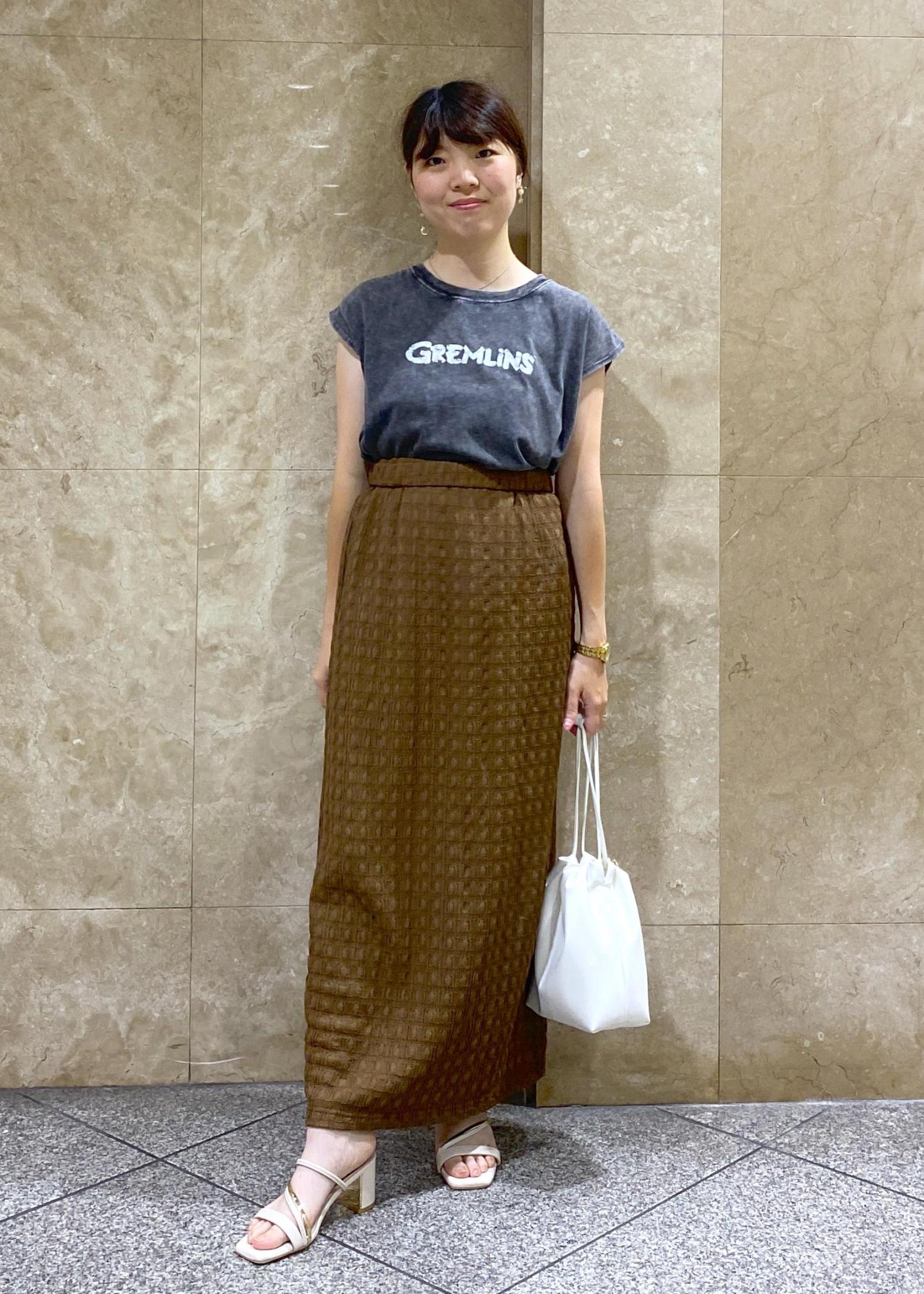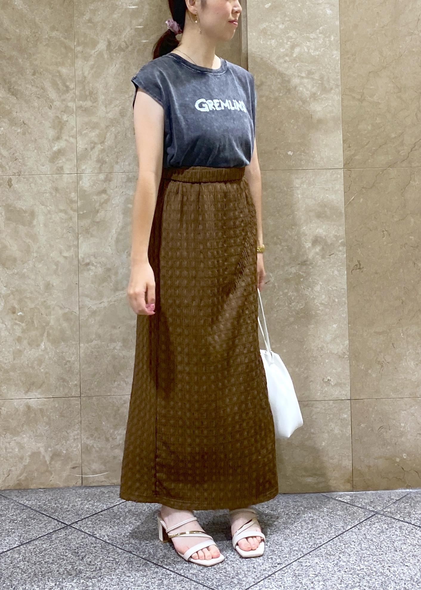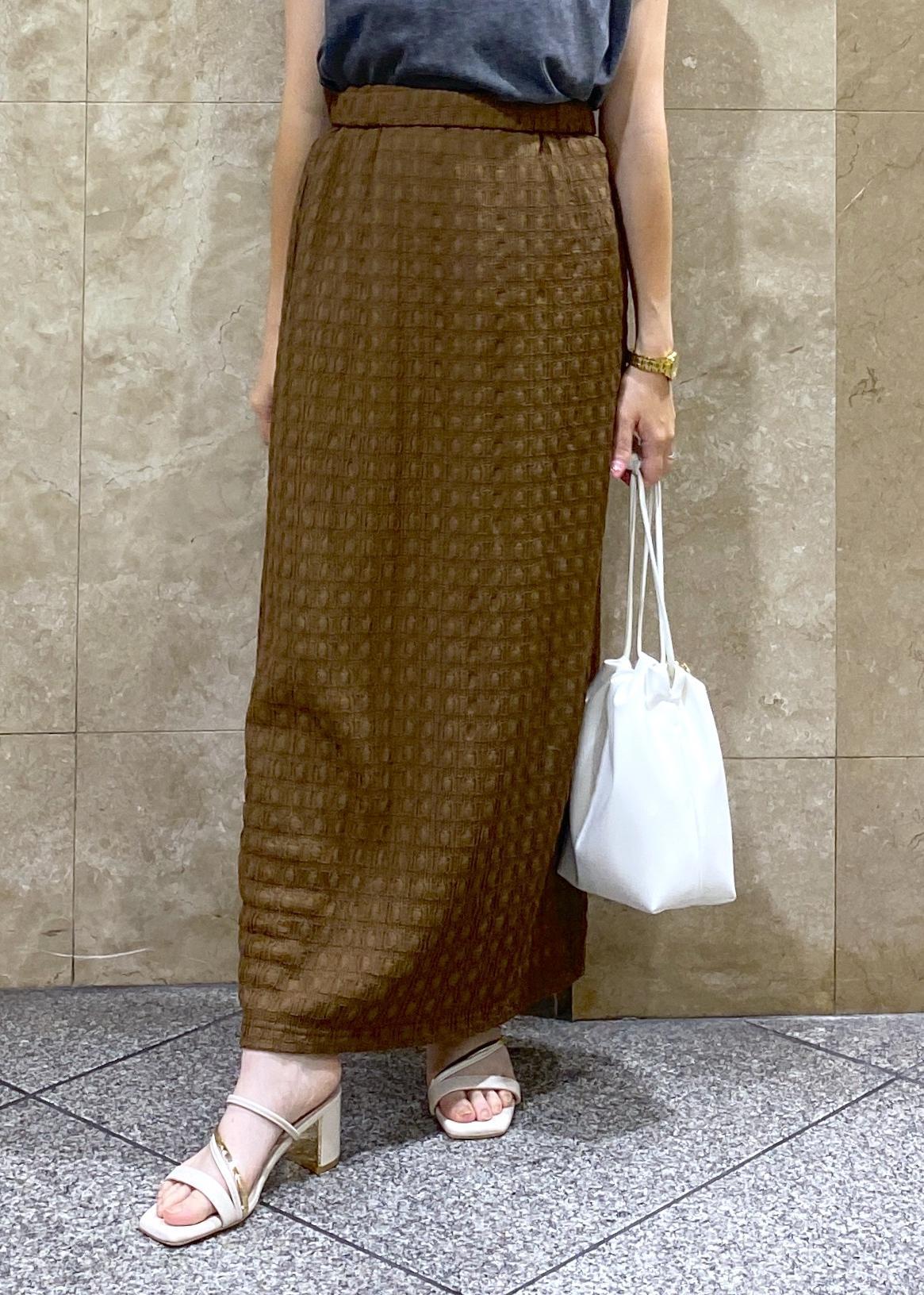 アウトレットVIS【新色追加】【接触冷感】膨れジャガードナロースカートブラウン / F¥3,293レビュー150cmでかかとがギリギリ見える丈感でした!