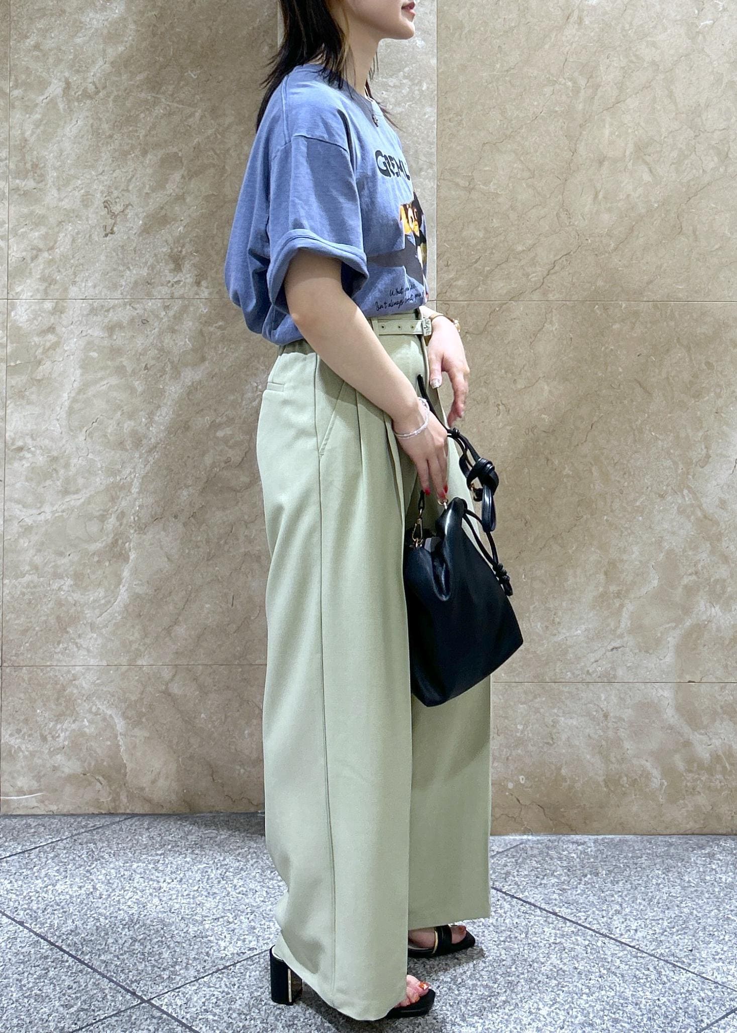 VIS【新色追加】【防シワ/接触冷感】ベルトディテールタックワイドスラックスパンツライトグリーン / SS¥6,589レビューサラサラでゆったりと履けるワイドシルエットのスラックスです。