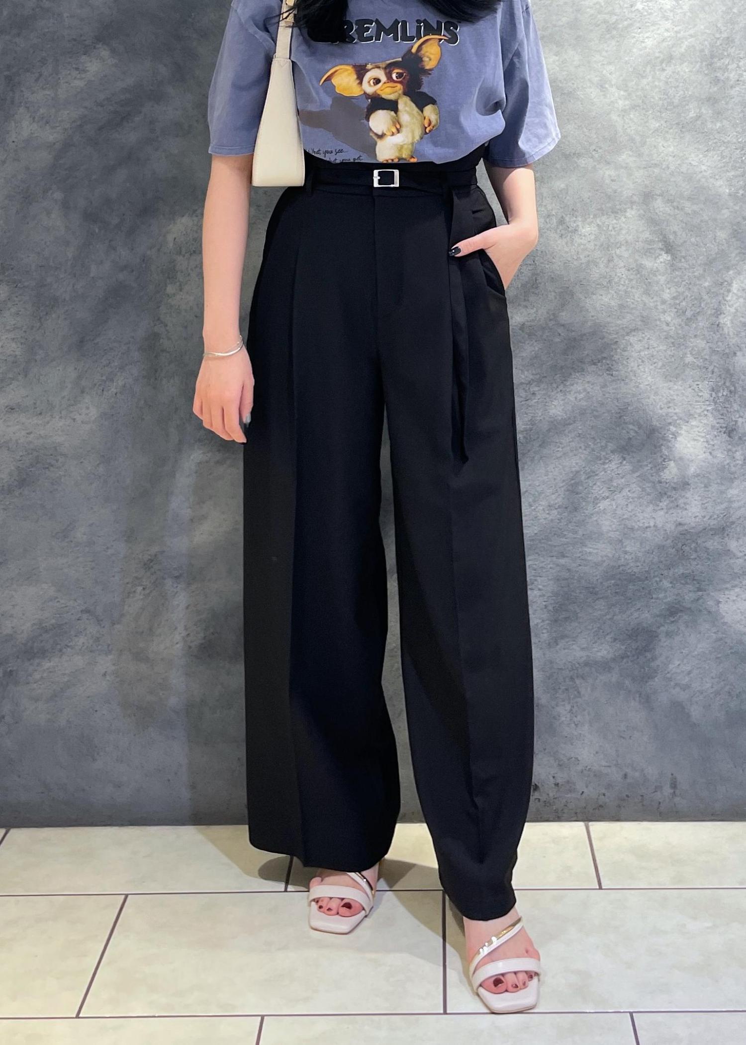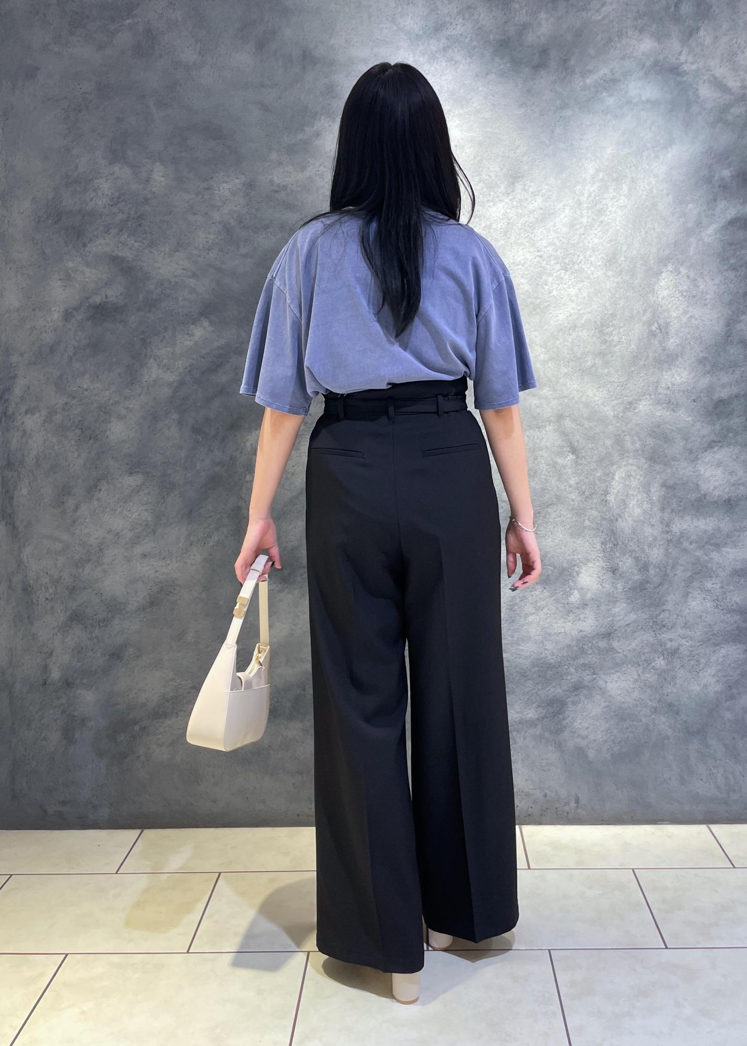 VIS【新色追加】【防シワ/接触冷感】ベルトディテールタックワイドスラックスパンツブラック / M¥6,589レビュー160cmでMサイズ着用。