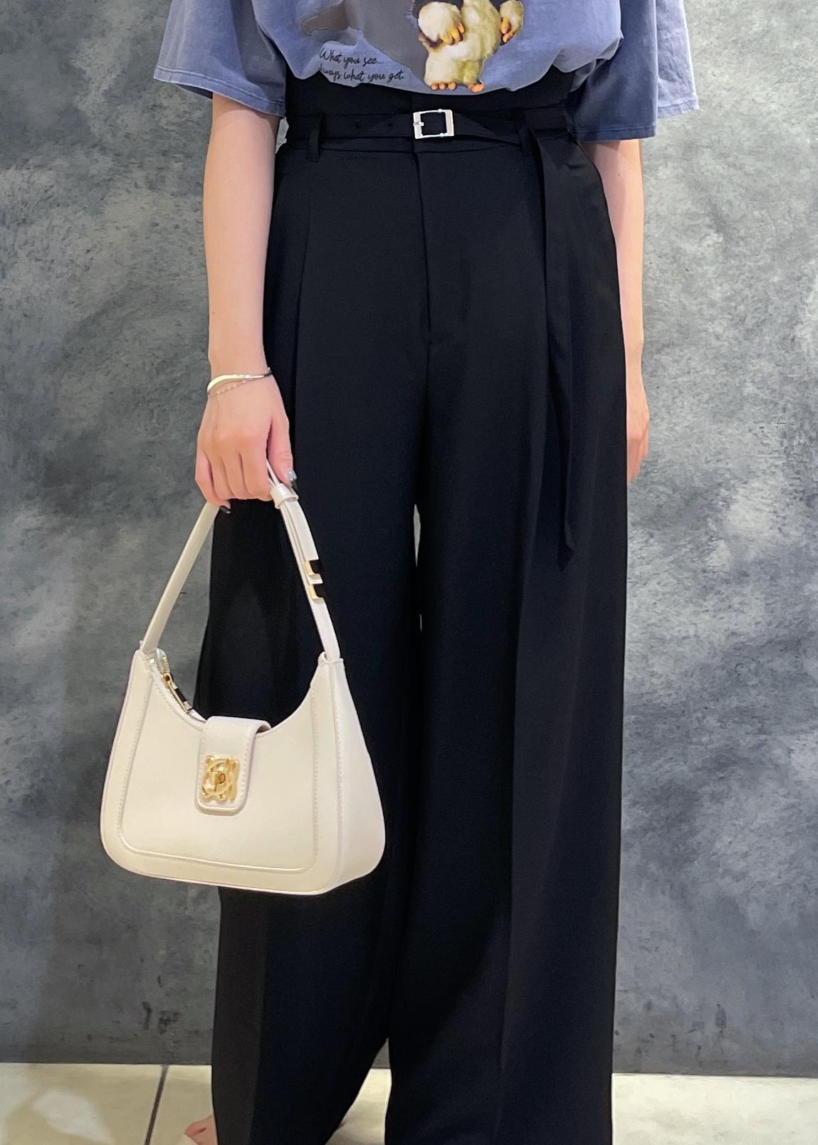 細ベルト付きのパンツなのでウエスト調整が簡単にできます! -