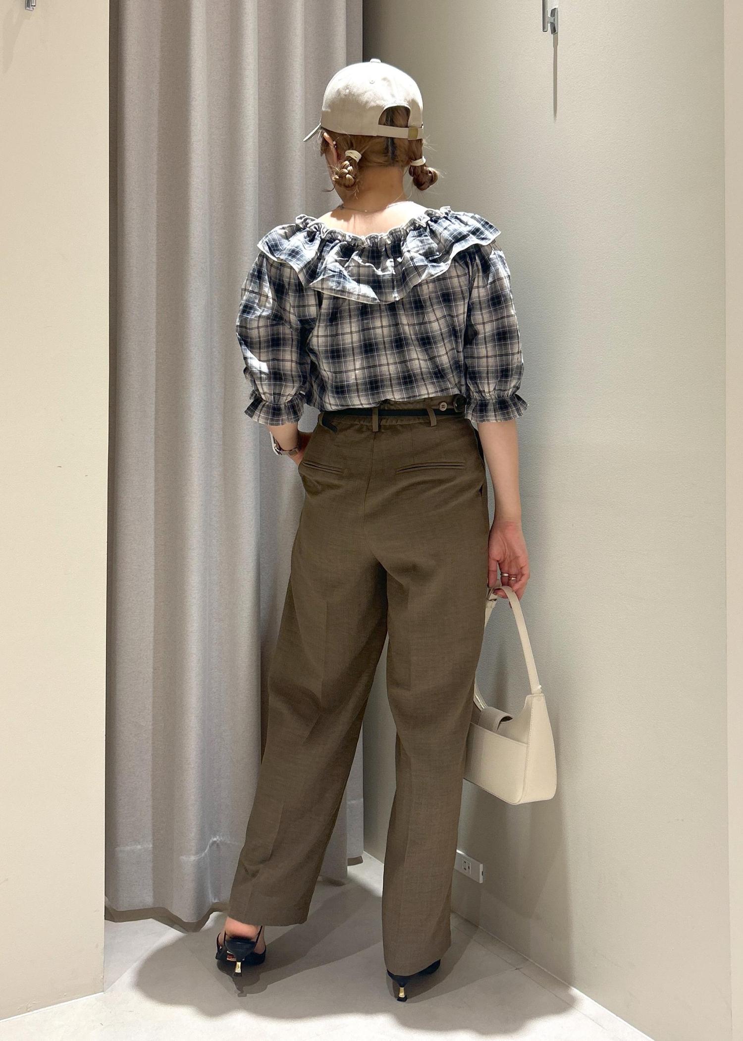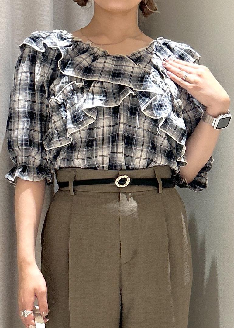 VIS【2WAY】フリルチェックオフショルブラウスブラック系 / F¥6,589レビュー骨格ストレートですが、オフショルにせず着用する方がしっかりきました◎