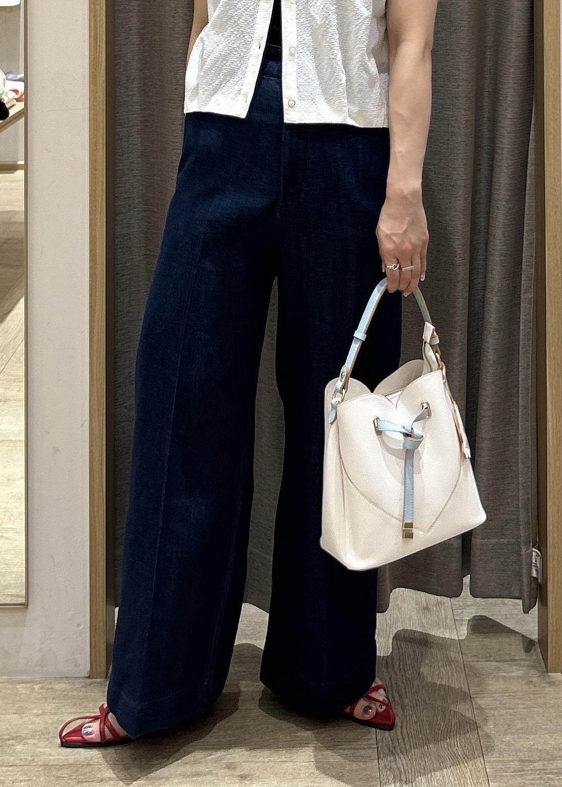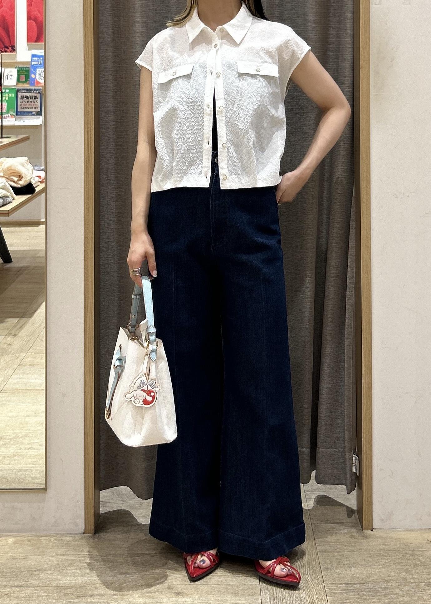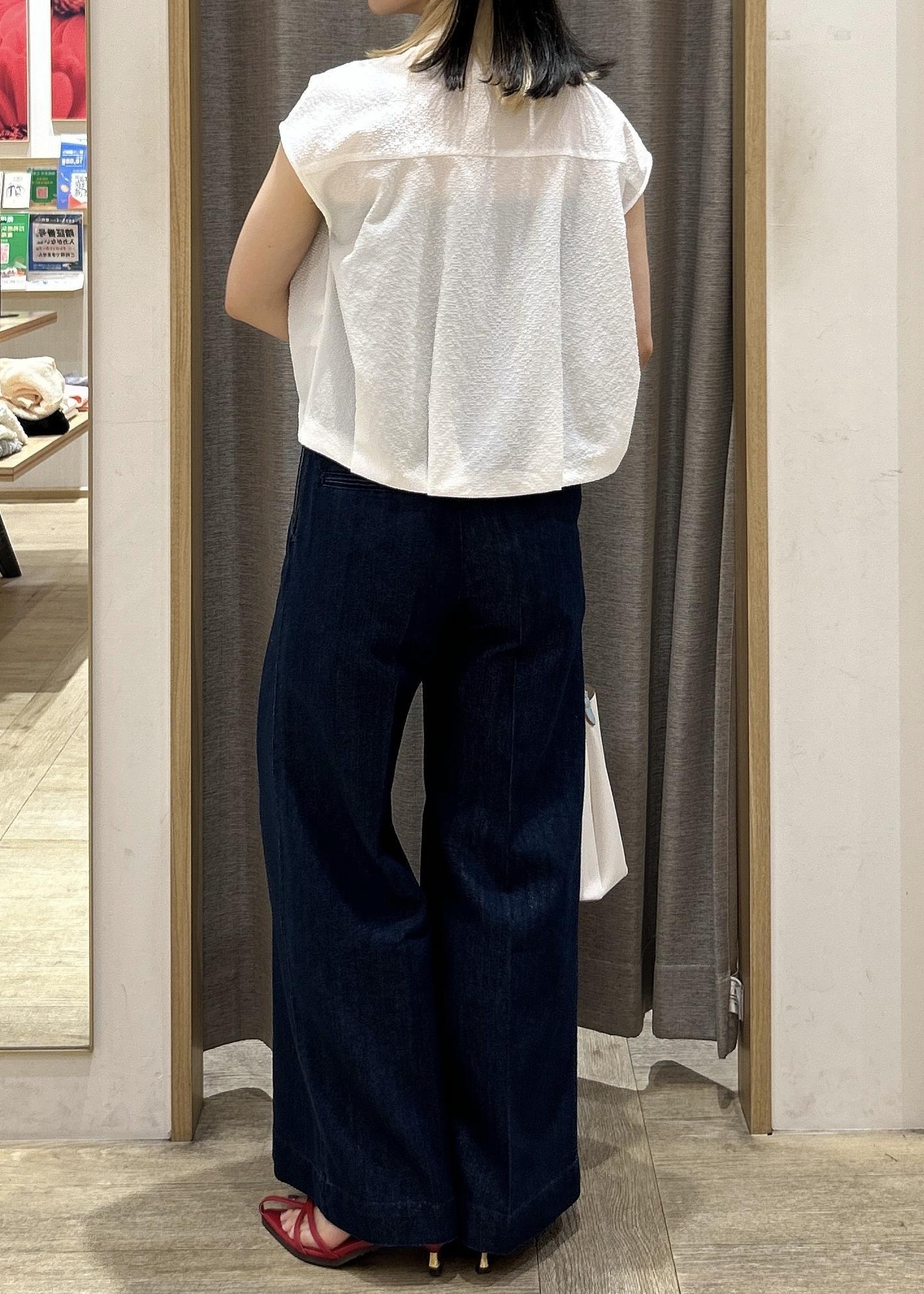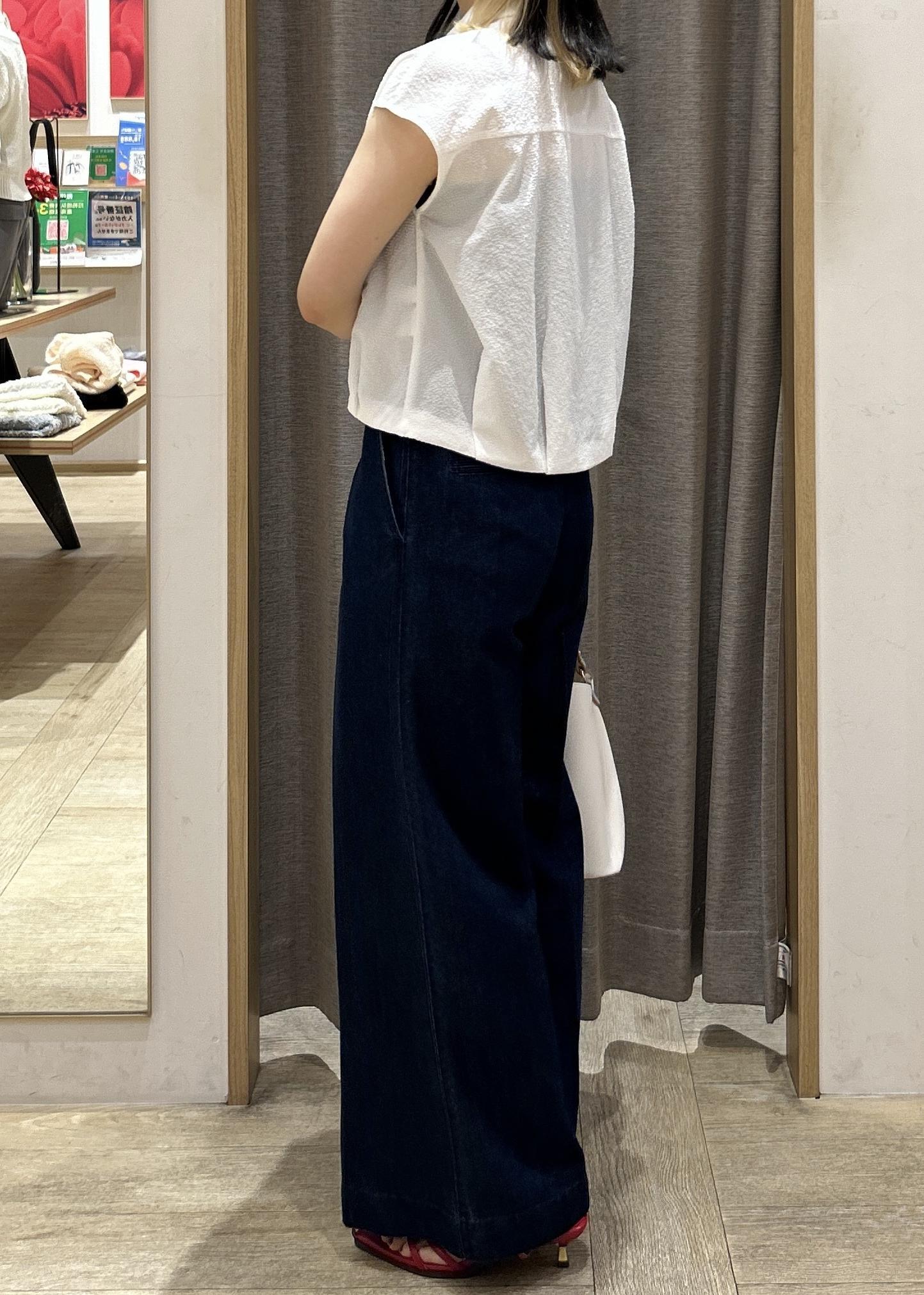 着丈はフラットシューズでジャストなので、他のデニムと比べると少し長めに感じました。