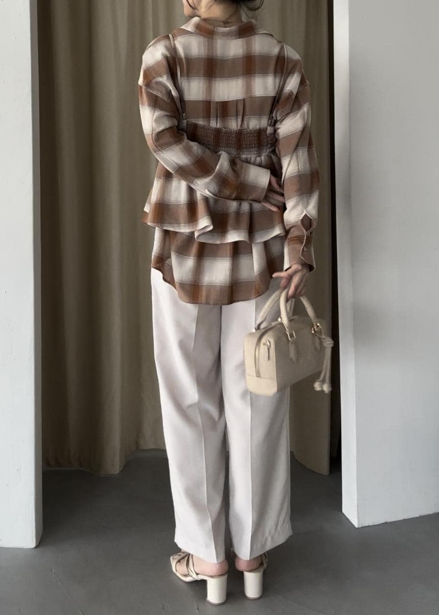 深みすぎない暖色のチェックカラーはセットアップ対応!
