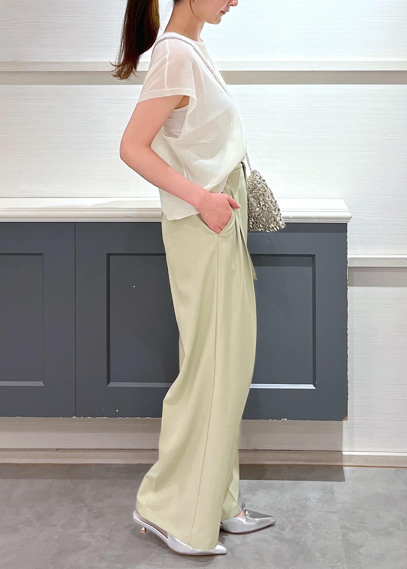 VIS【新色追加】【防シワ/接触冷感】ベルトディテールタックワイドスラックスパンツライトグリーン / S¥6,589レビュー156cm、Sサイズ着用でウエストも丈感もピッタリでした◎