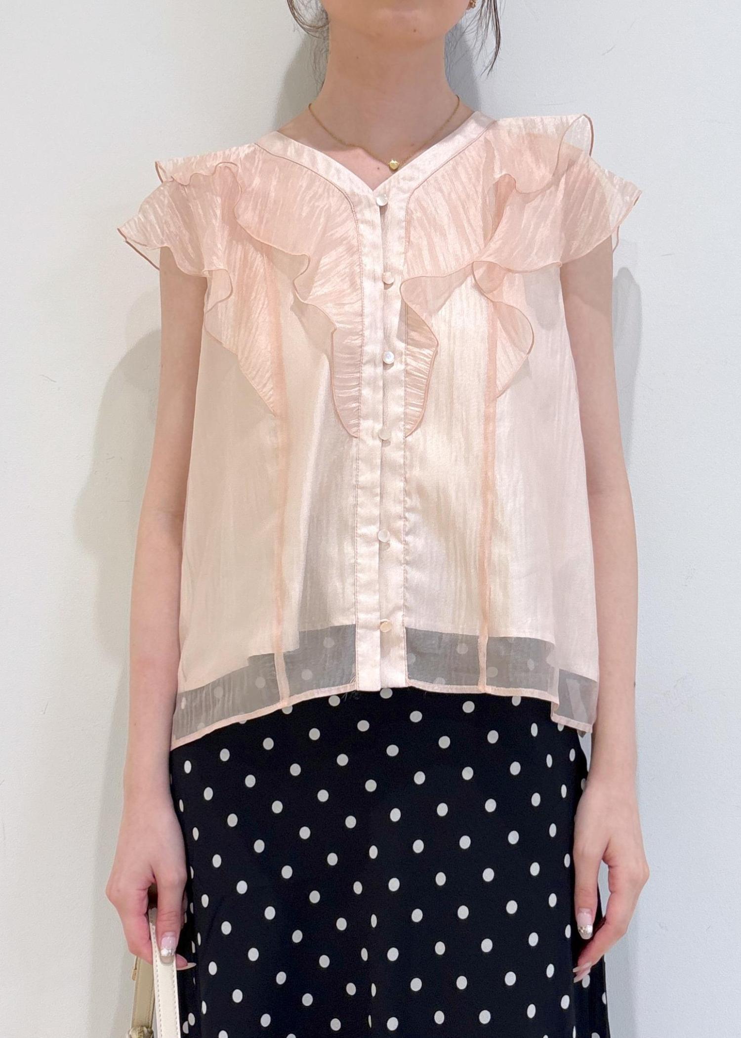 アウトレットVISシアーラッフルフリルブラウス/通勤対応ピンク / F¥3,842レビューツヤ感があり上品な印象のブラウスです。