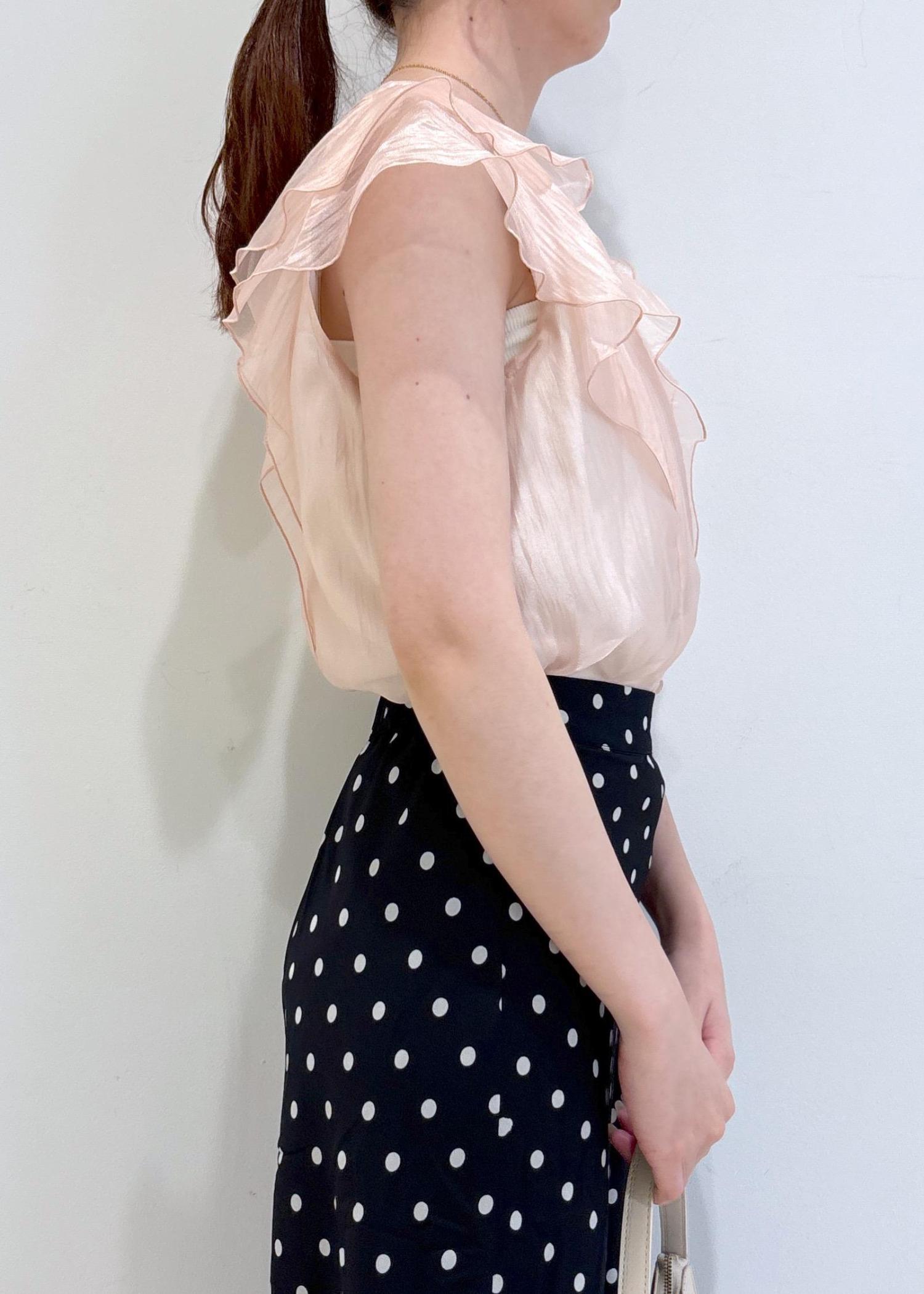 フリルが肩周り隠してくれるので二の腕もカバーできます◎ -