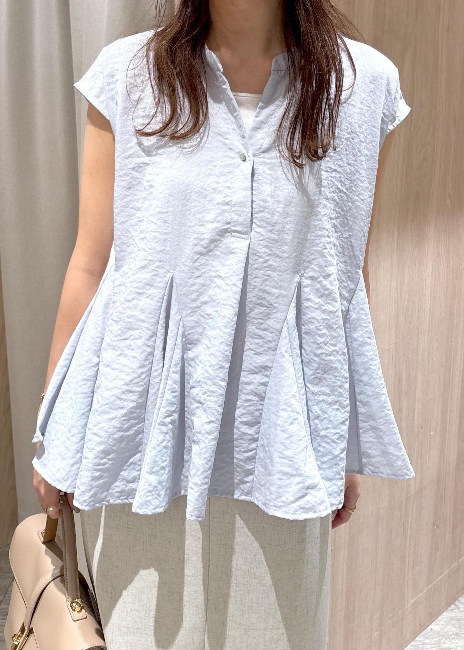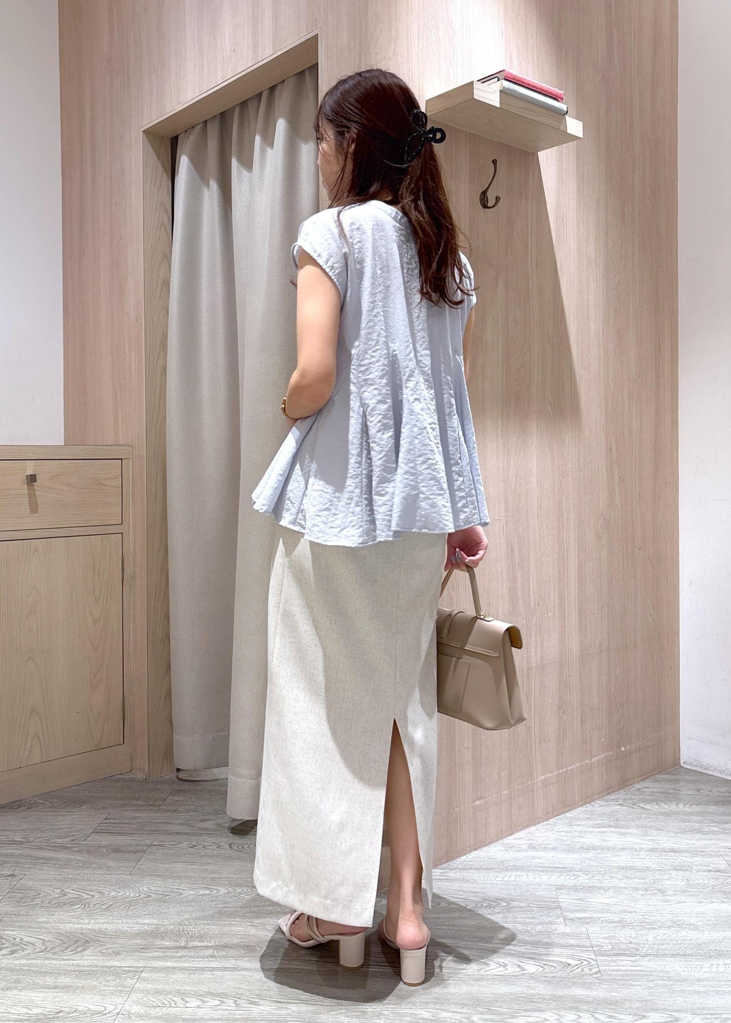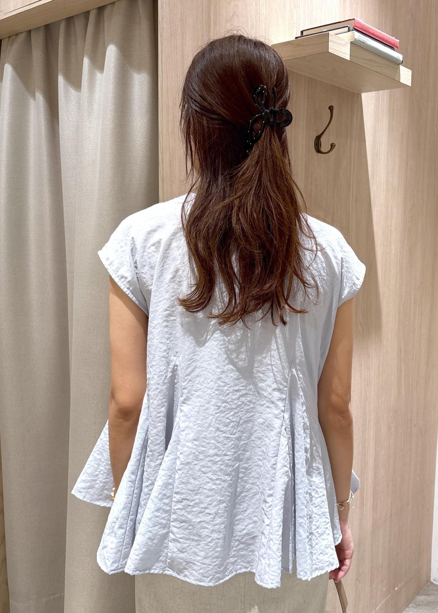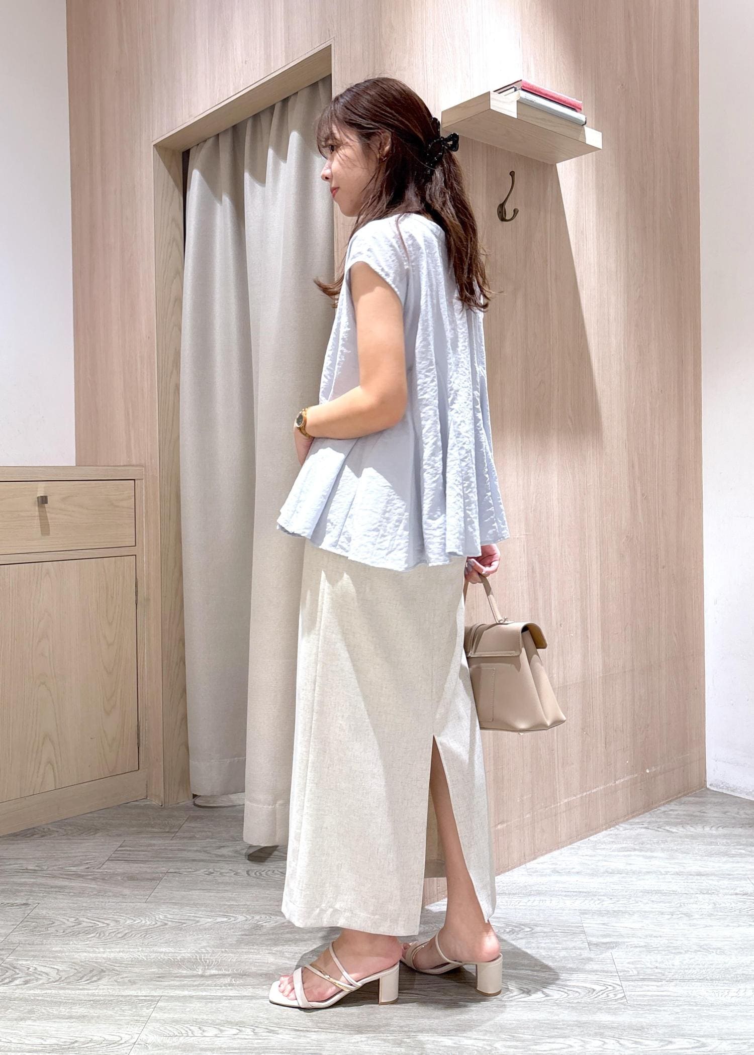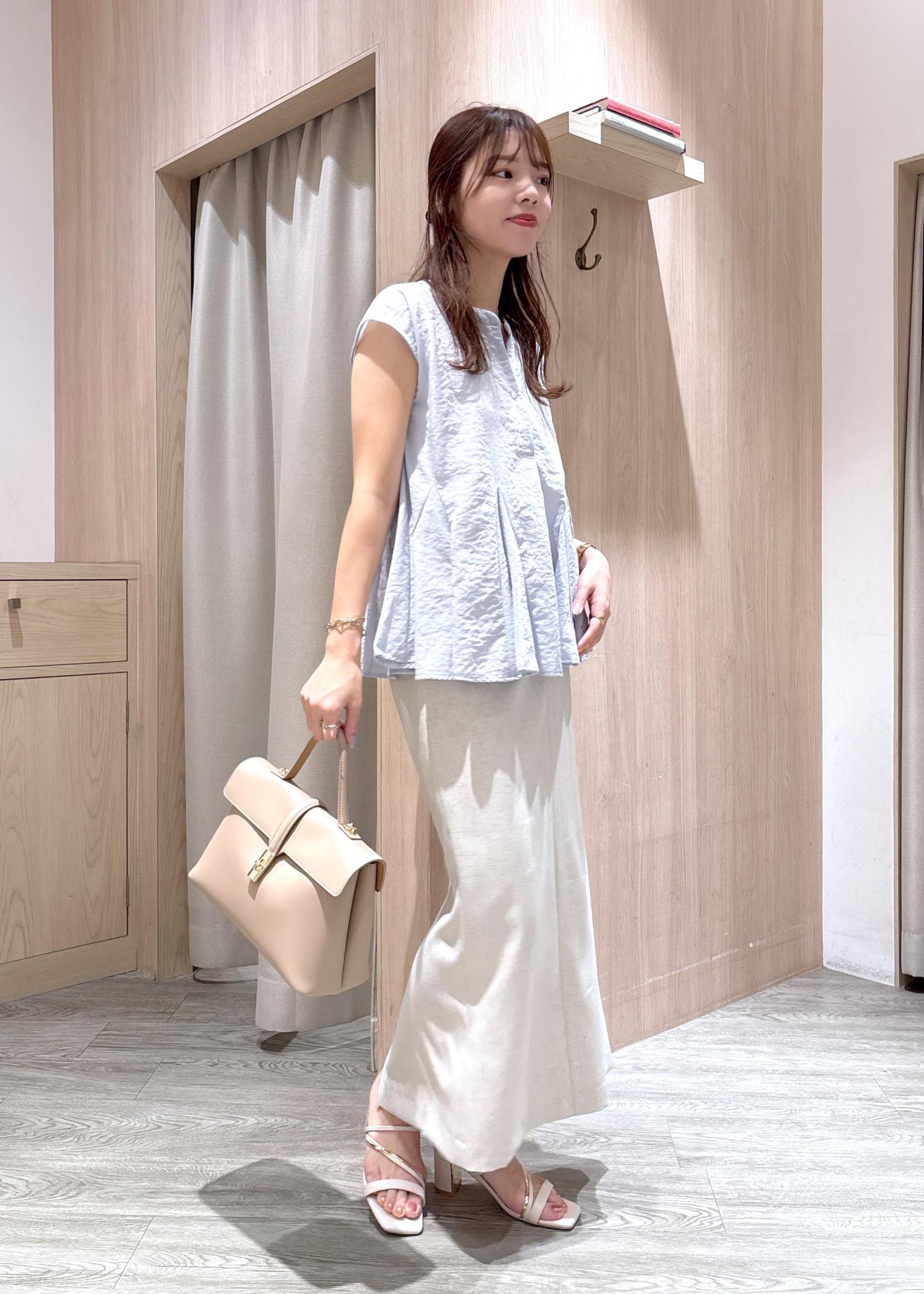 ブラウス動くたびふわっと揺れるのが女性らしいスタイルです。動きがあることで風を感じやすく爽やかな印象にも◎