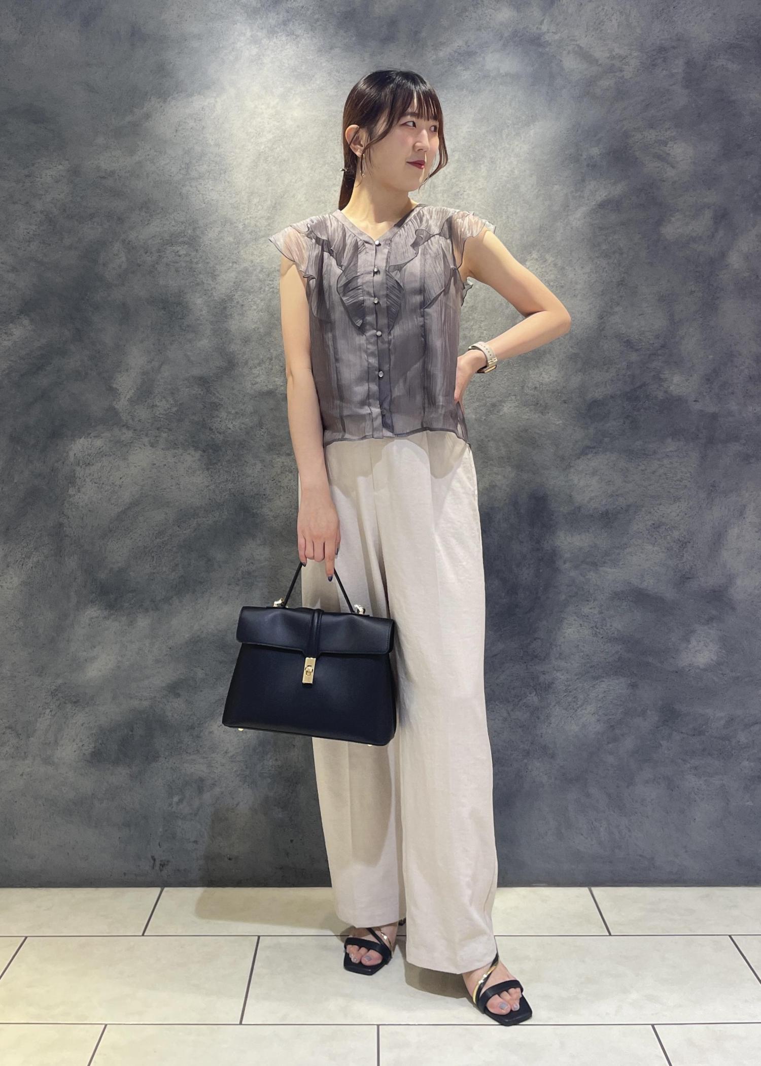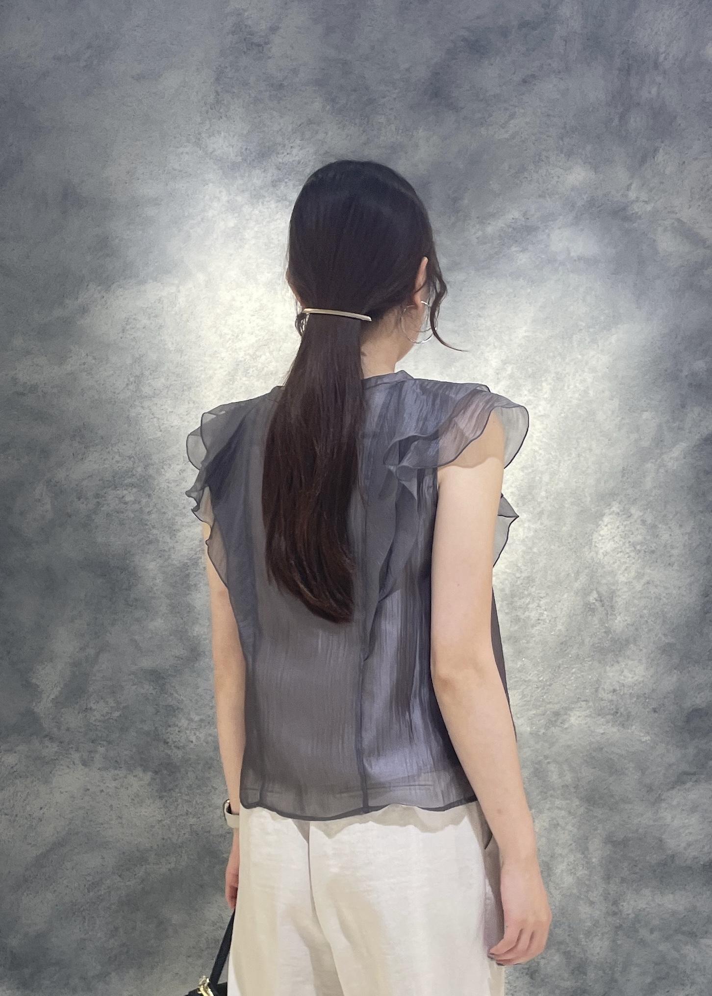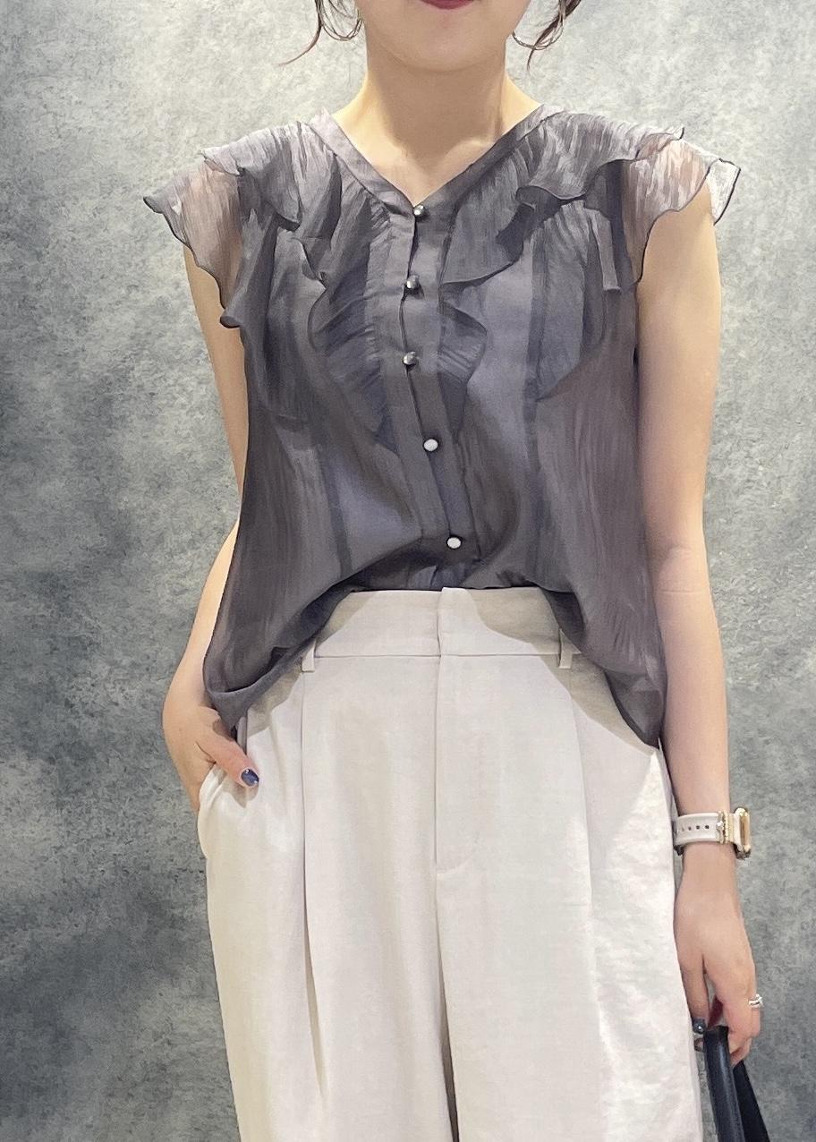 アウトレットVISシアーラッフルフリルブラウス/通勤対応チャコール / F¥3,842レビューリアルバイしました!