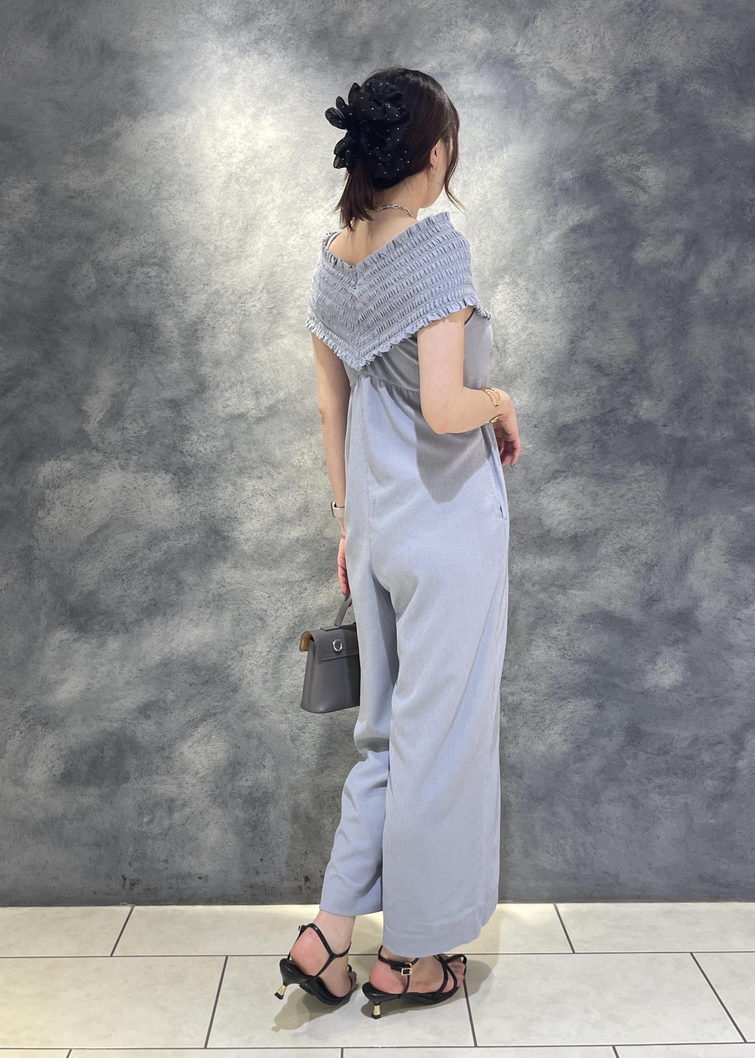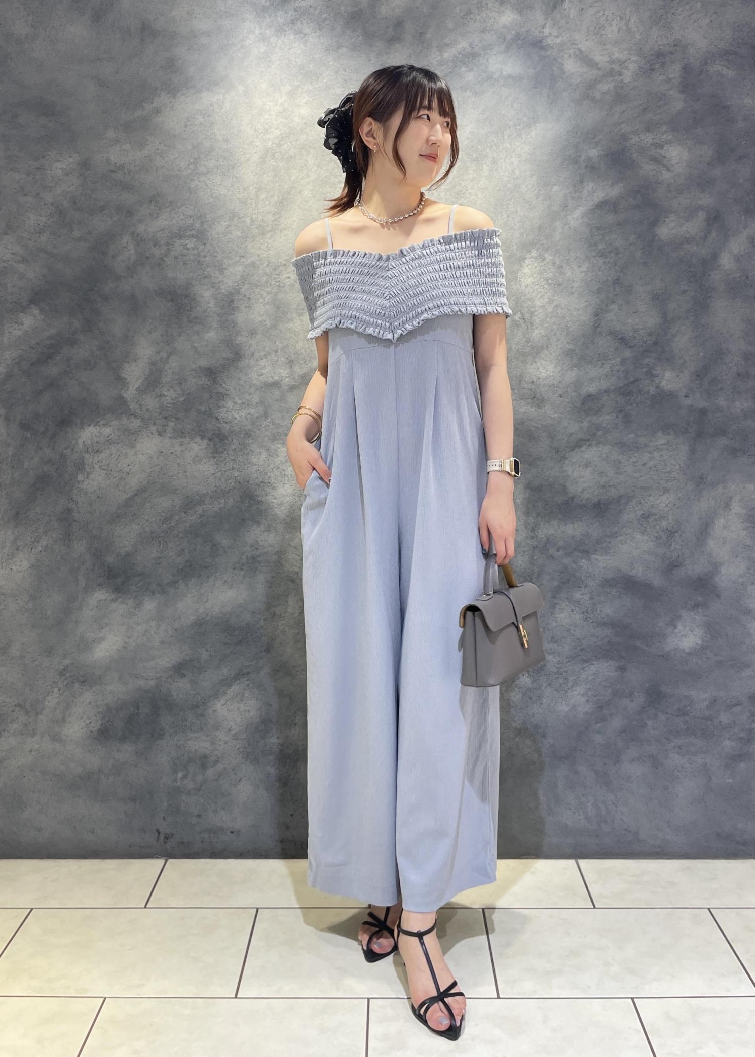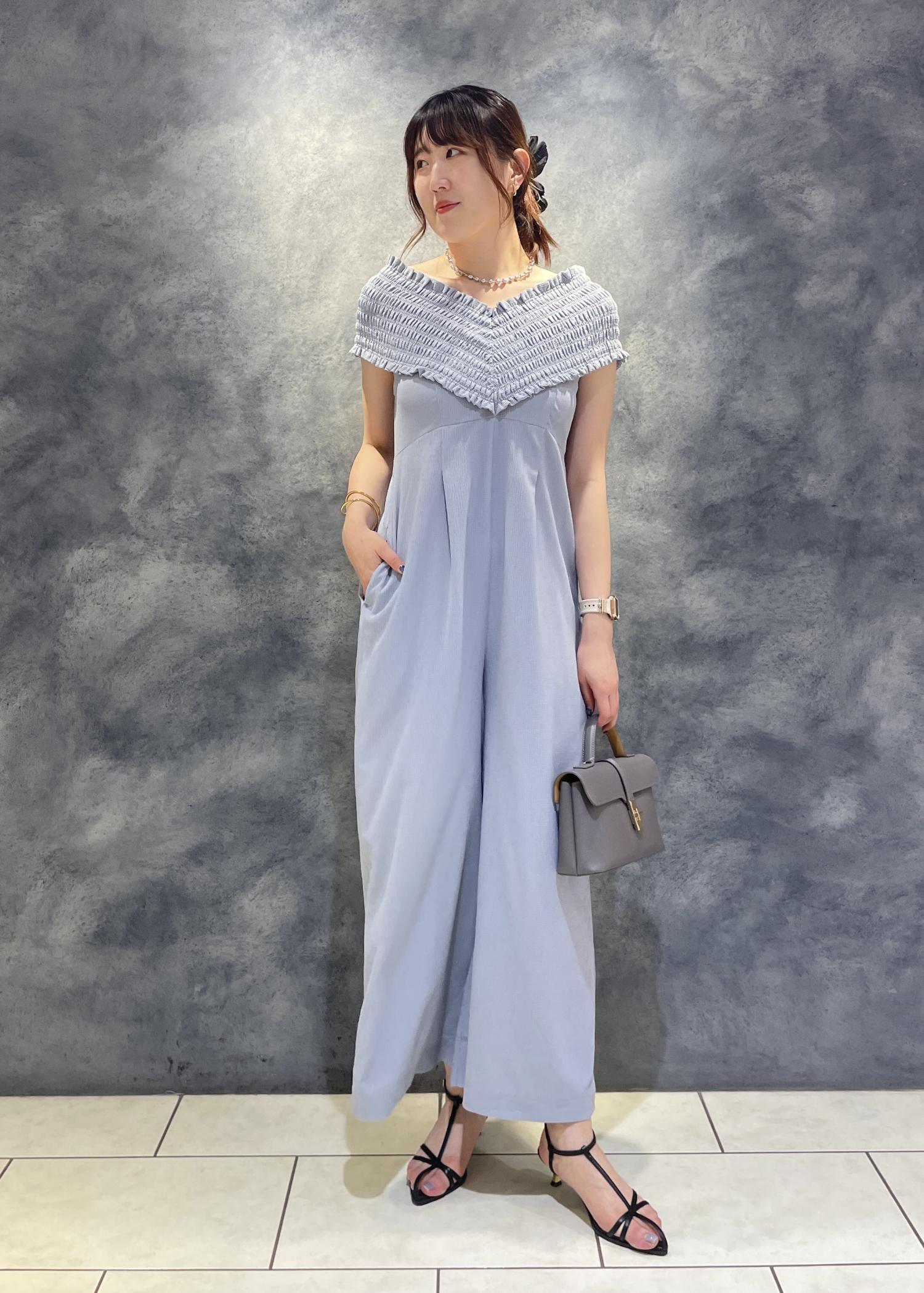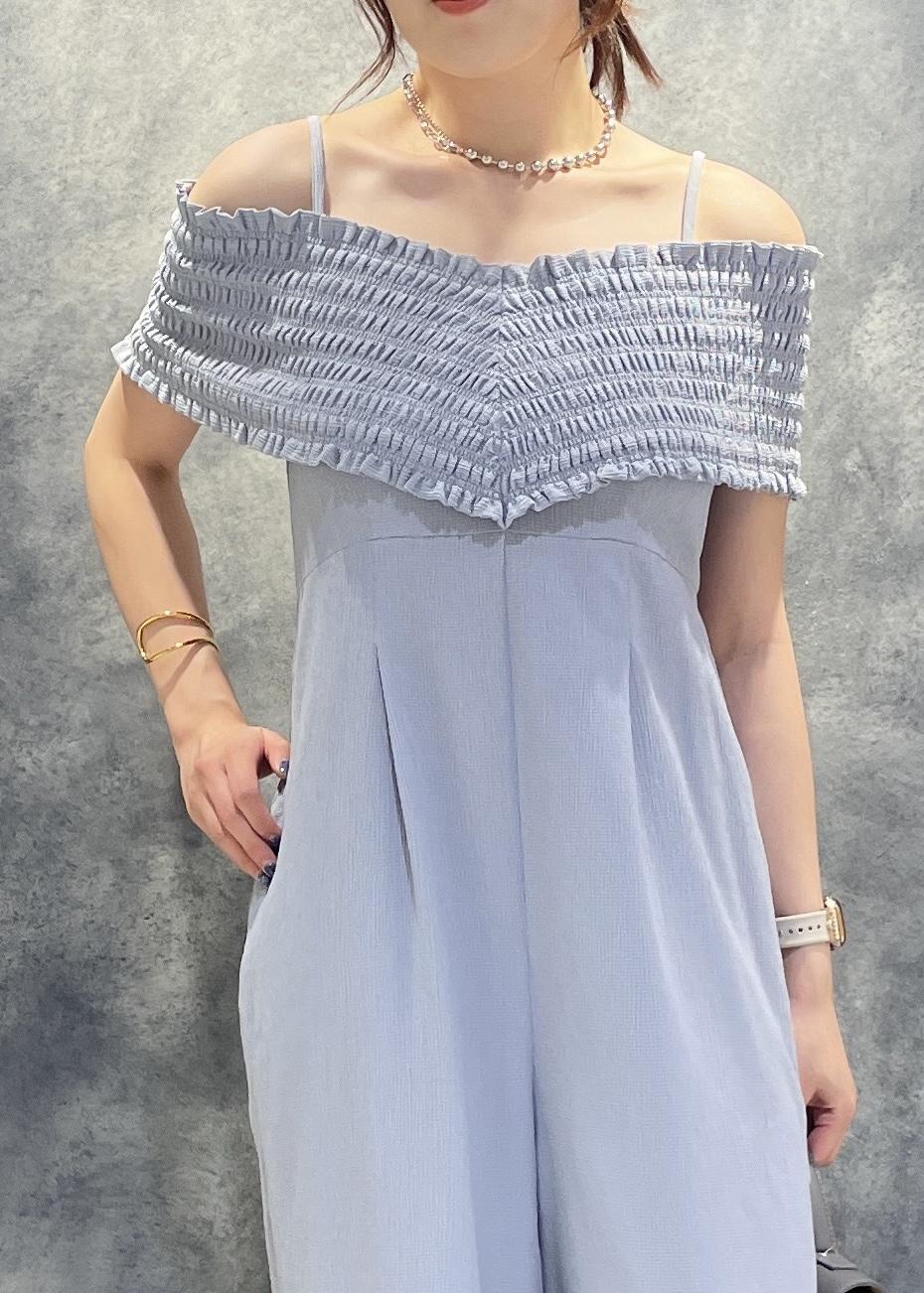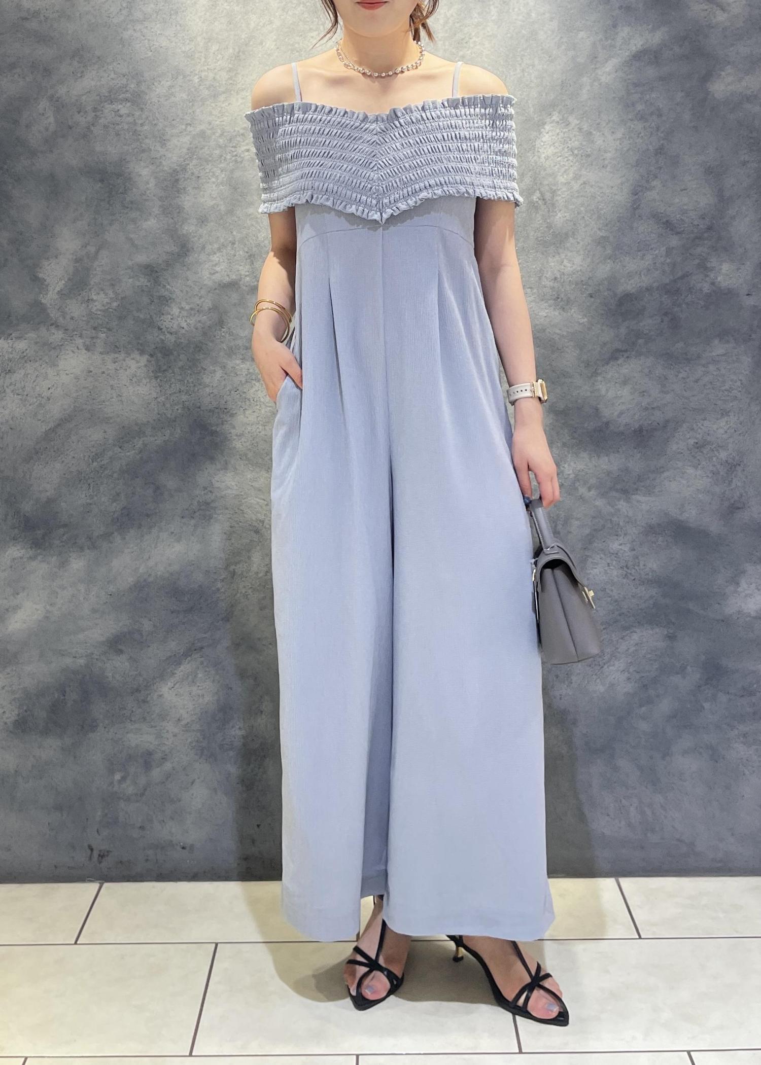アウトレットVISシャーリングオフショルダーオールインワンブルー系 / F¥6,327レビューとても軽くサラッとした素材感で涼しいです!