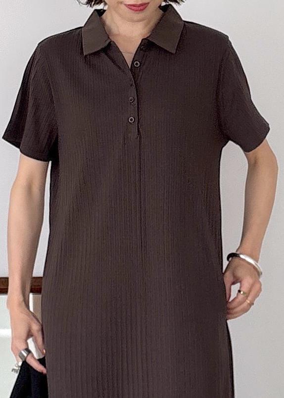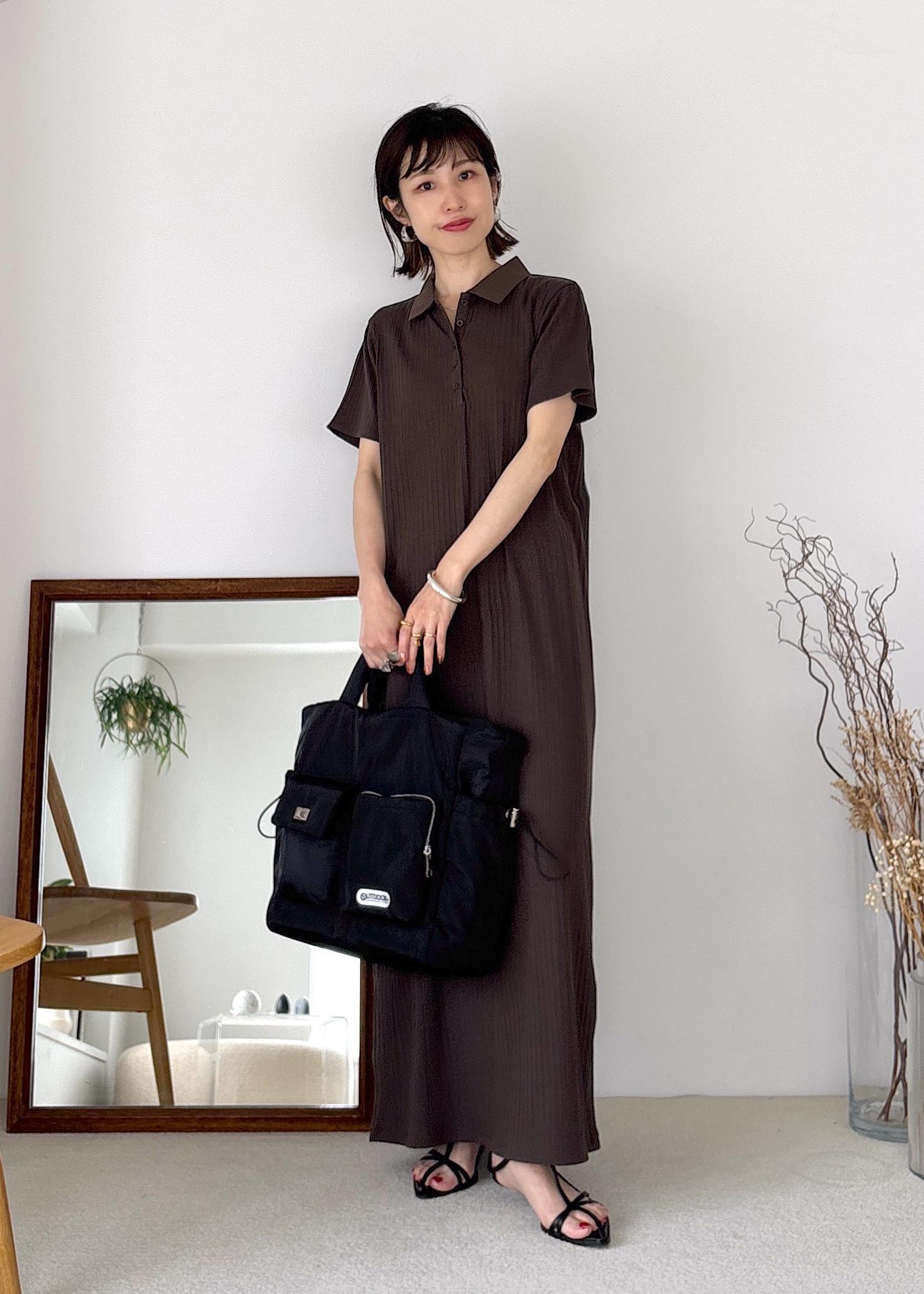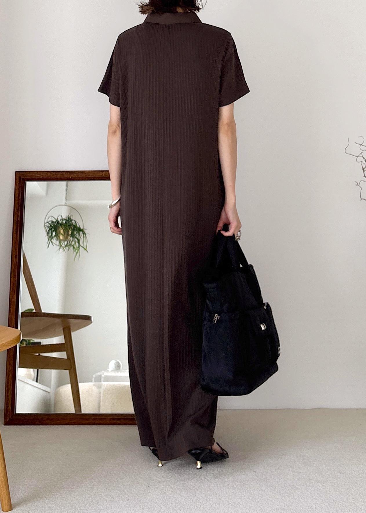 VISポロ衿ランダムリブワンピースダークブラウン / F¥4,612レビューポロ襟が目を惹くワンピース♪カジュアルだけど女性らしい、ランダムなリブ使いがキレイなシルエットのデザインワンピです。さらっとした素材で締め付け感がなくとても着やすい◎全体的にややゆったりめ、着丈は足首が少し見えるくらいの長さでした。
