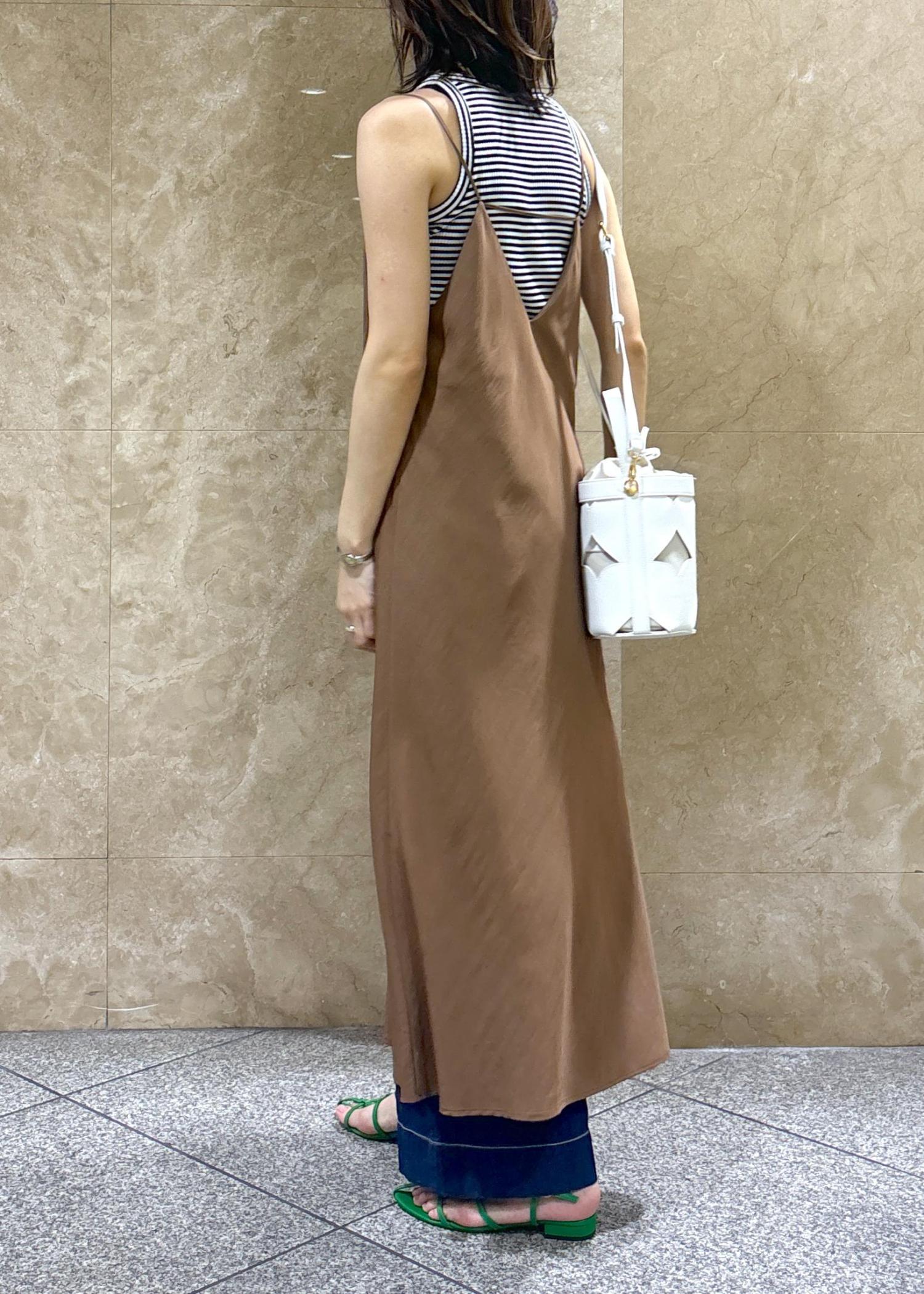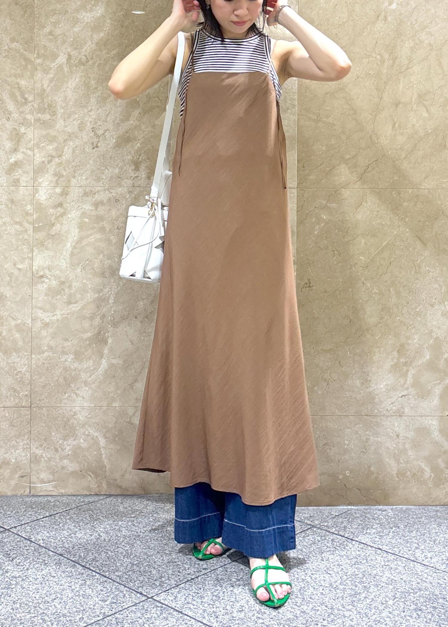 アウトレットVISバイヤス仕立てナローキャミワンピースブラウン / F¥3,076レビュー長さ調整の出来るキャミワンピース。