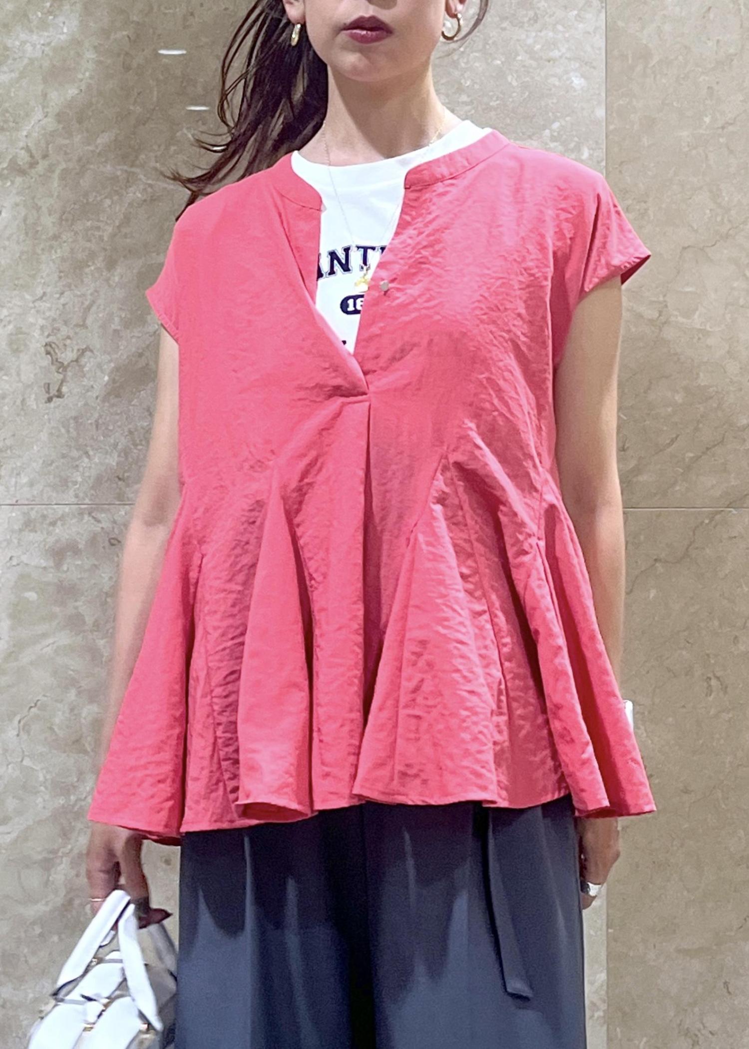 夏の上がるテンションにぴったりの、赤ブラウス。