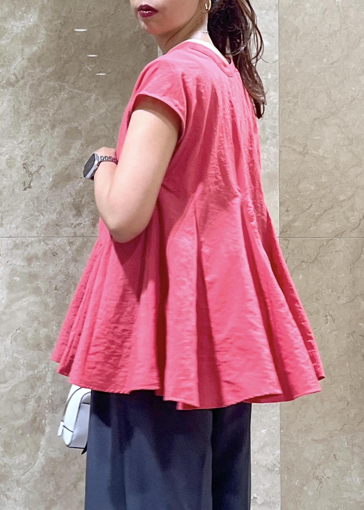 サラッとパンツを合わせるだけで華やかにキマる、かつ体型カバーも叶う優秀ブラウスです◎ -
