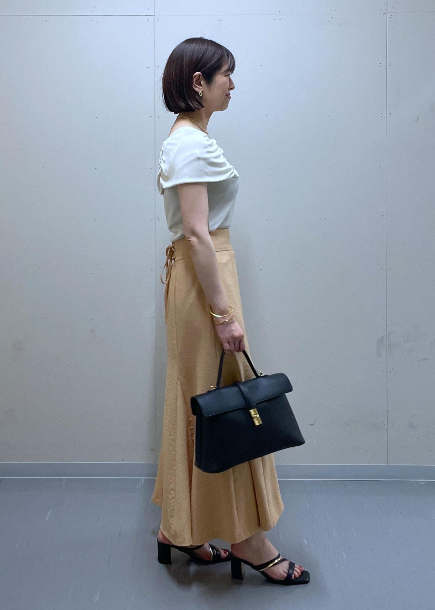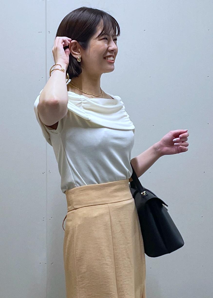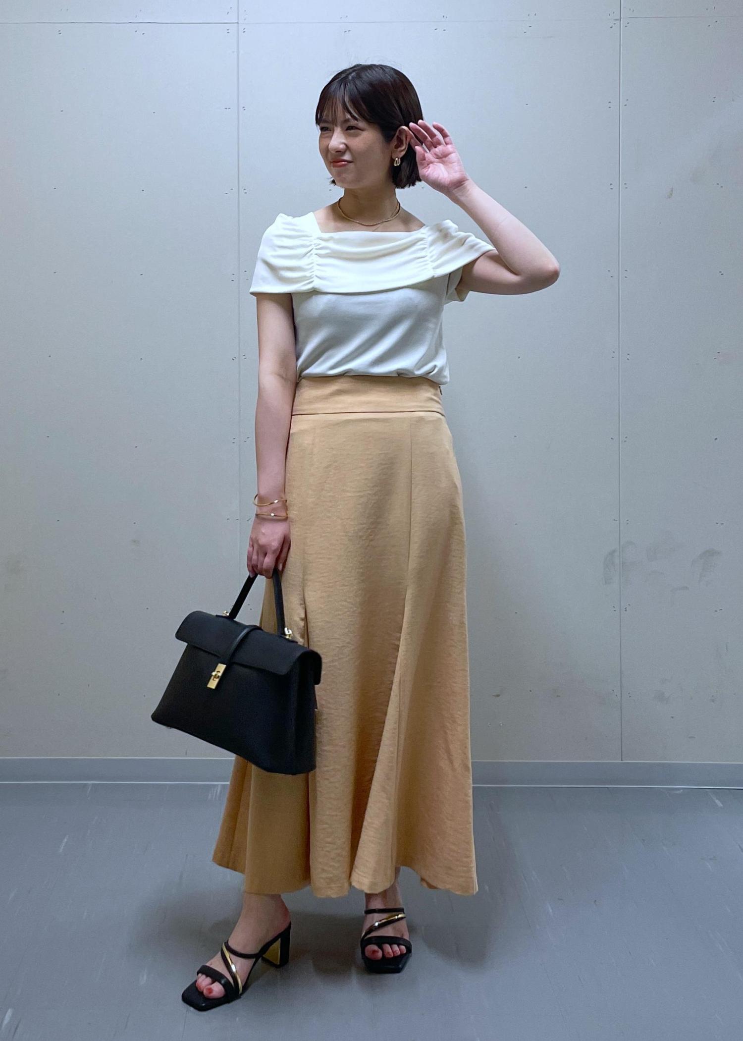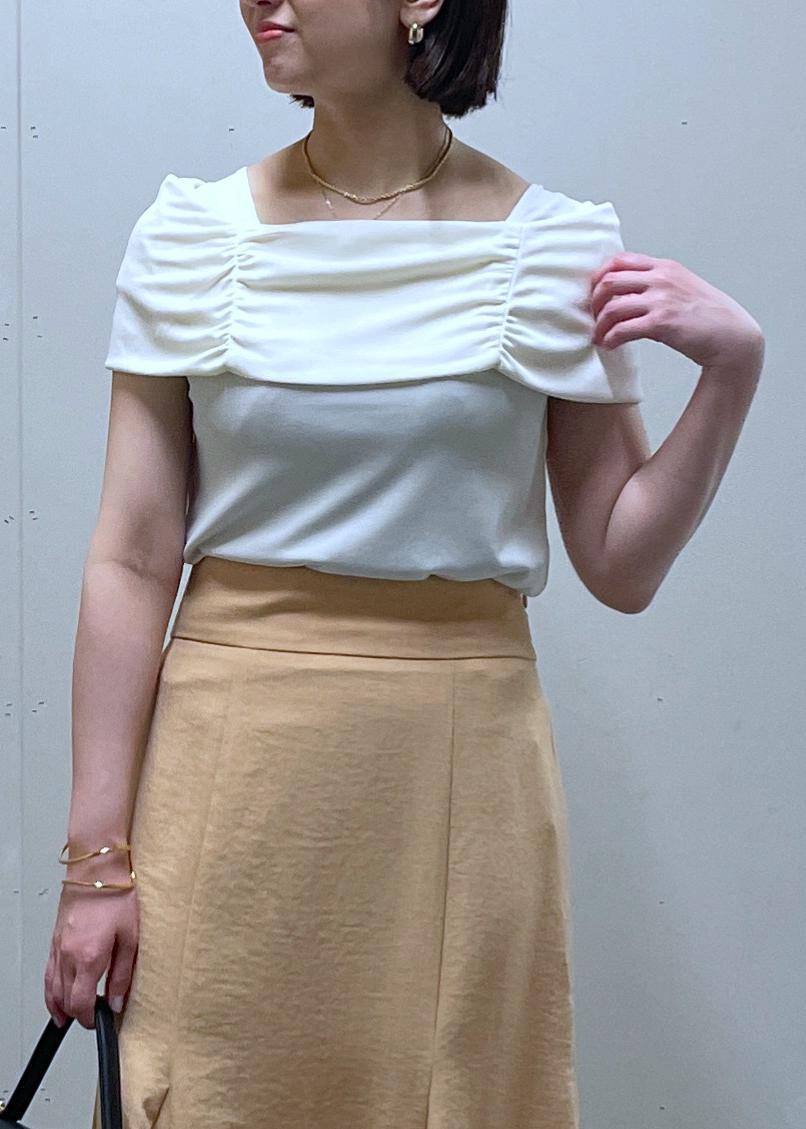 オフショル風デザインですが肩にマチがあるので、ずり落ちたりせずインナーも見えづらいです◎ -