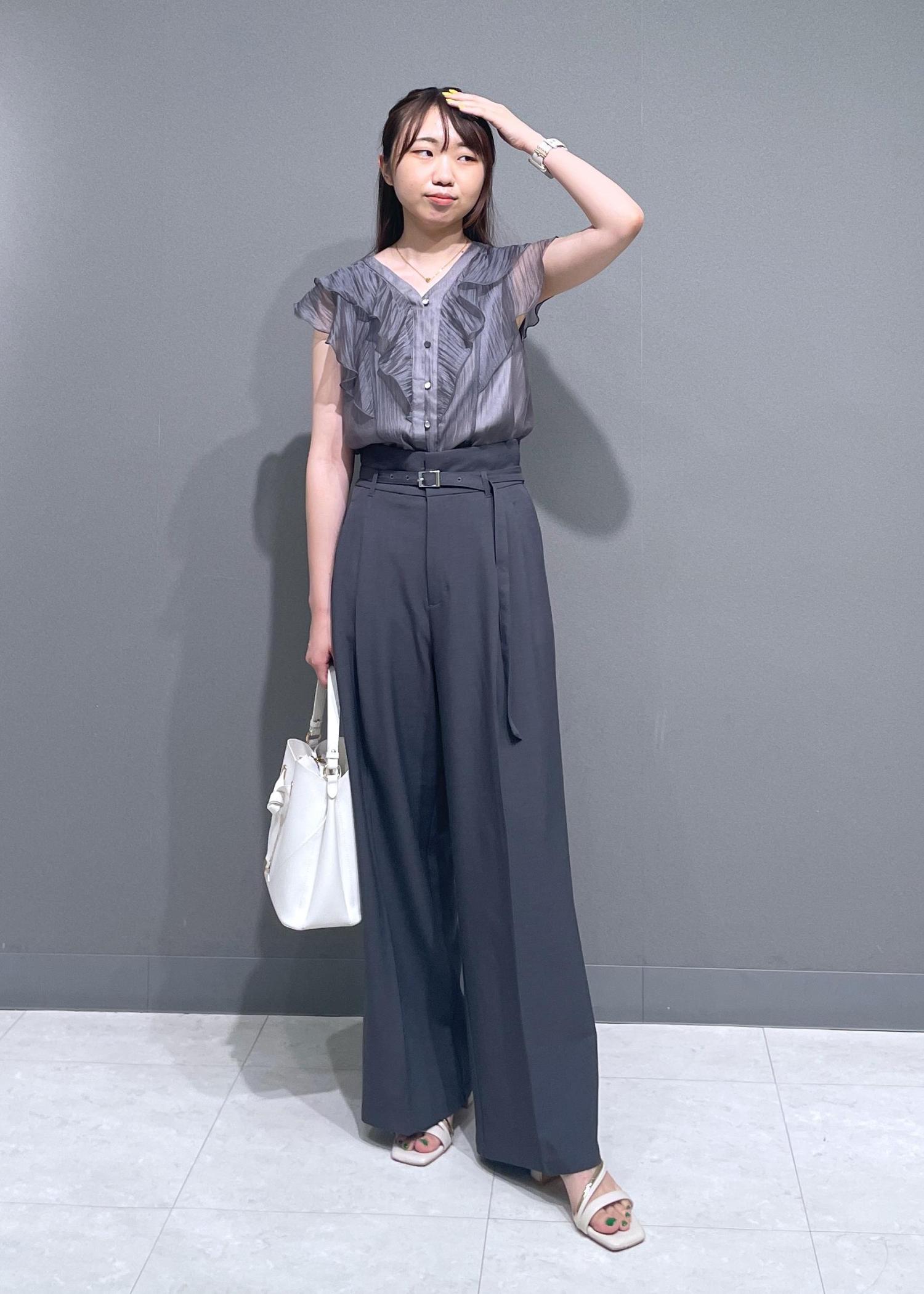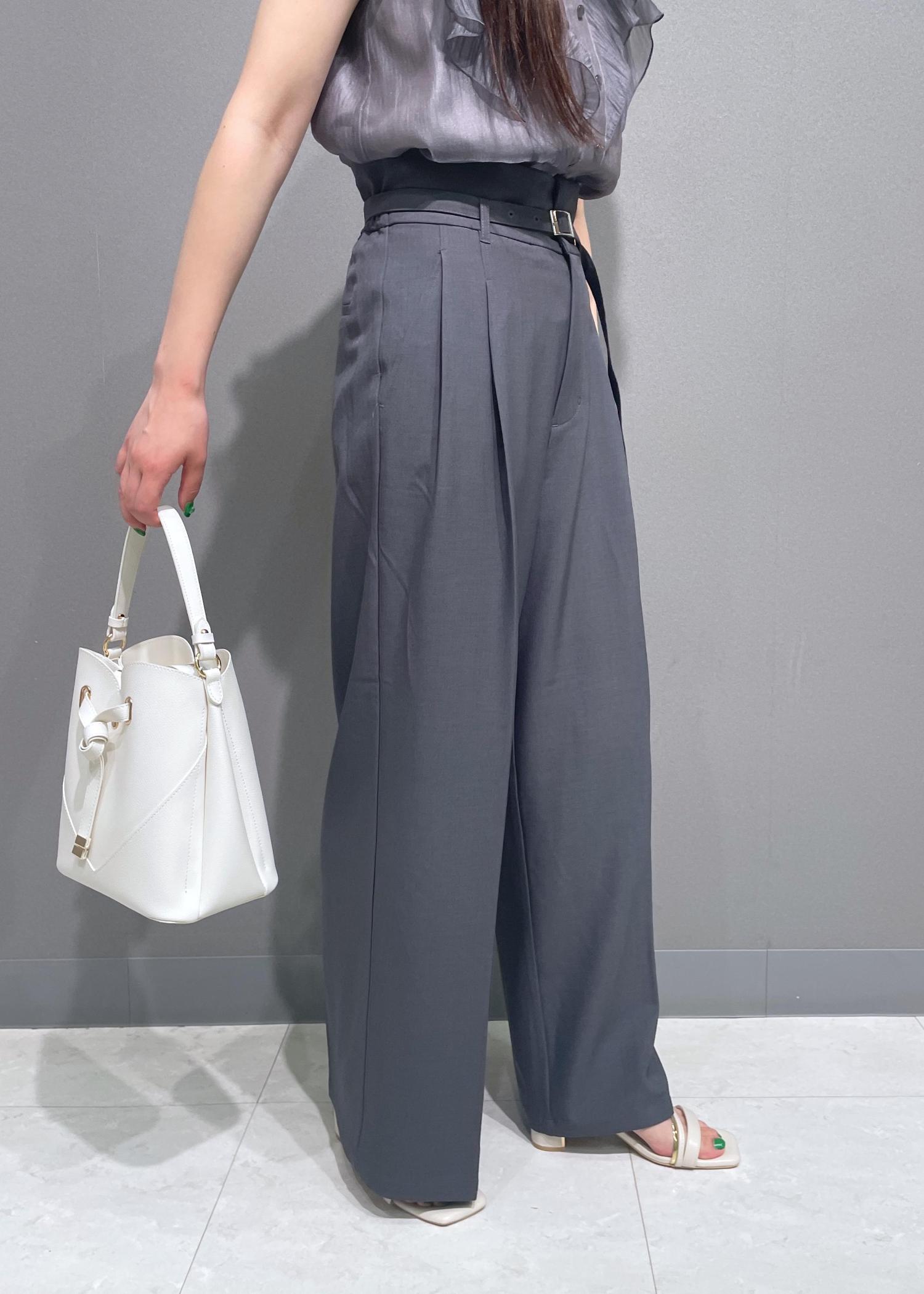VIS【新色追加】【防シワ/接触冷感】ベルトディテールタックワイドスラックスパンツチャコール / M¥6,589レビュー人気パンツの新色を着ました☺︎︎︎︎