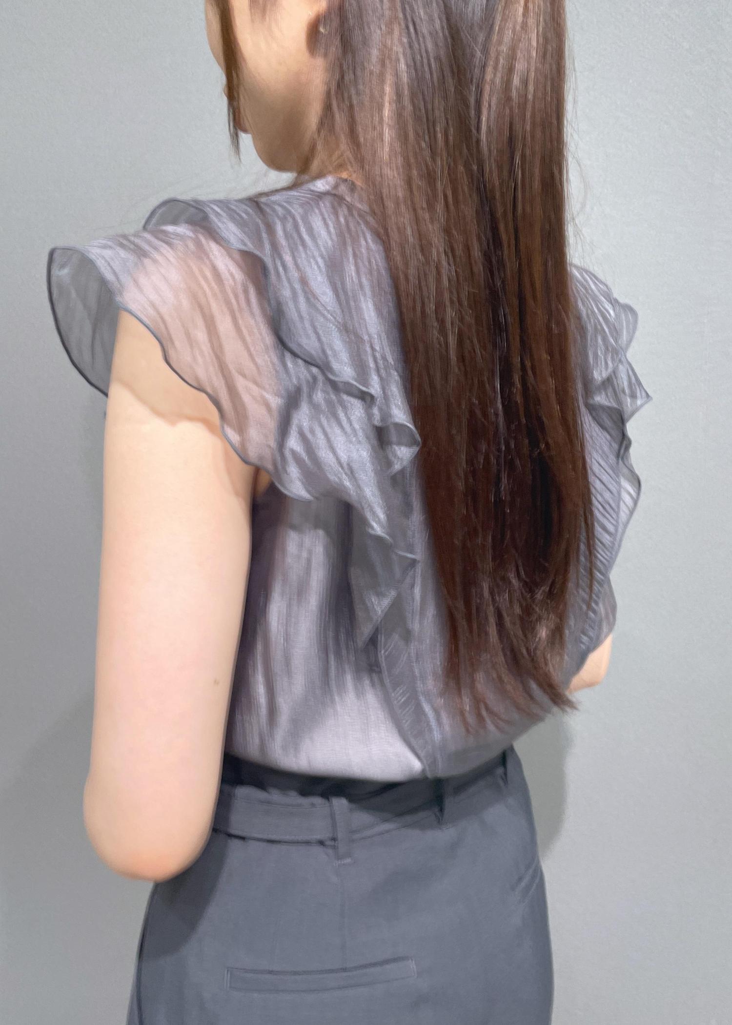 アウトレットVISシアーラッフルフリルブラウス/通勤対応チャコール / F¥3,842レビュー光沢のあるシアーフリルが可愛いブラウスです。