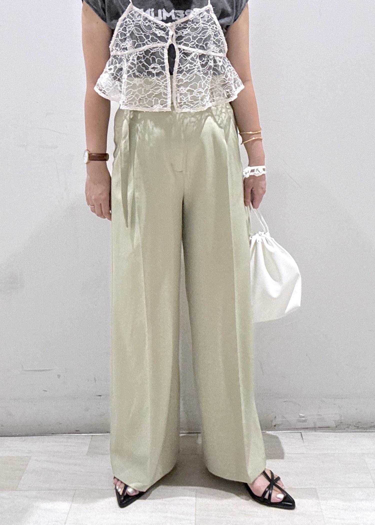 レースビスチェとワイドパンツを合わせた大人カジュアルコーデにしました。