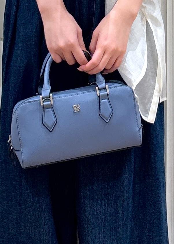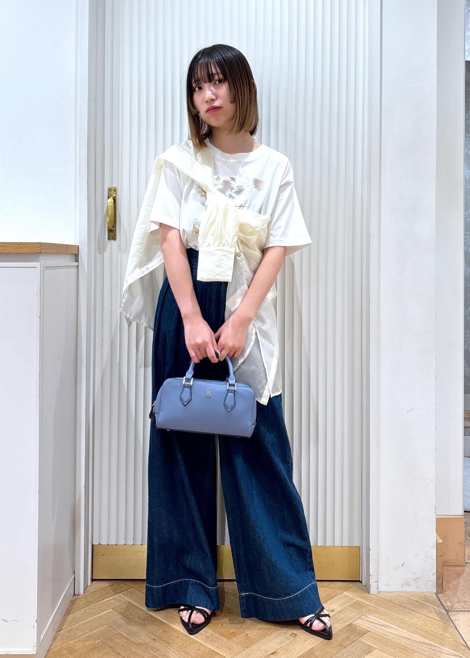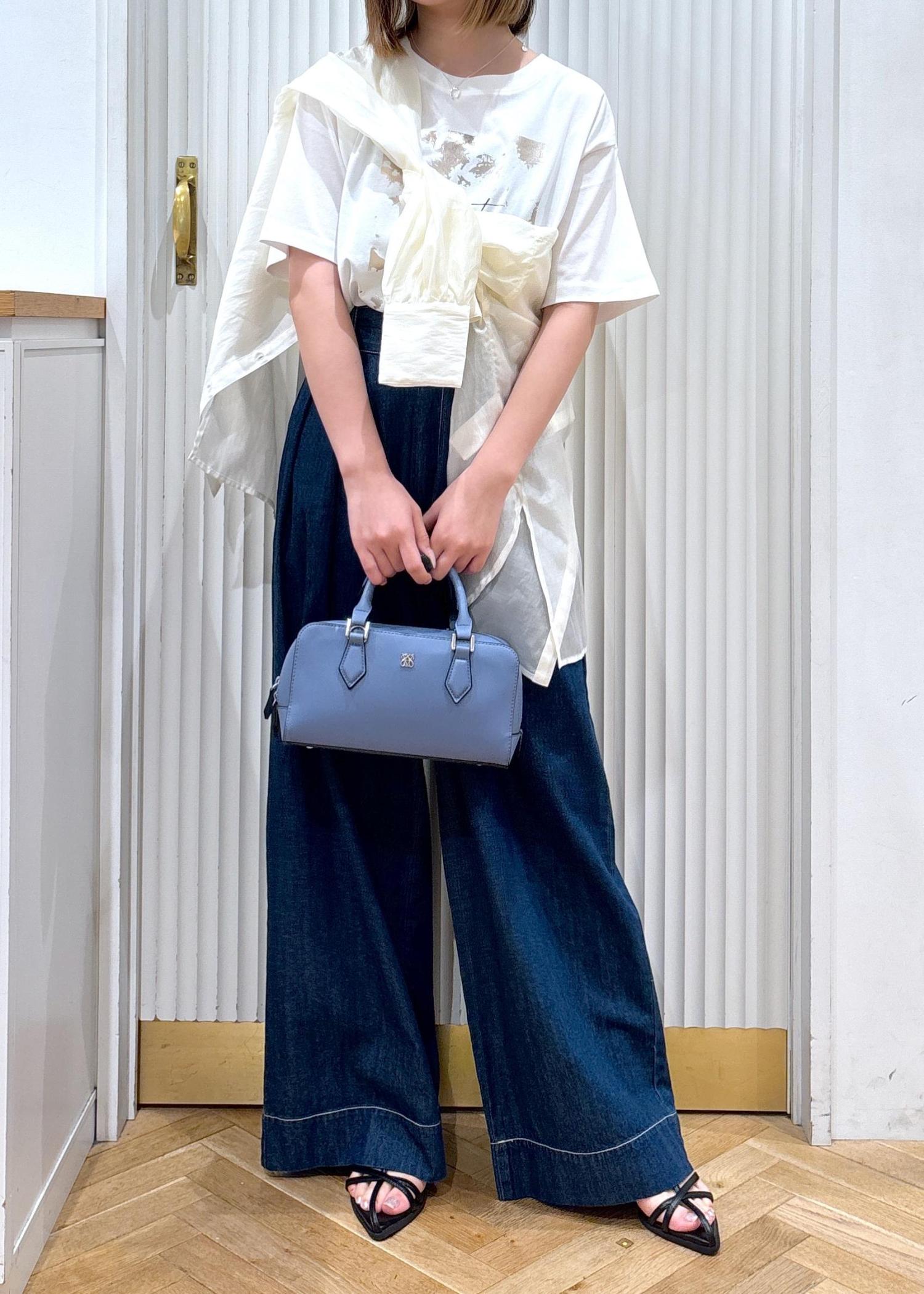 デニムに合わせてブルーのバッグにする事で、色味もうるさくならずまとまりが出ます!