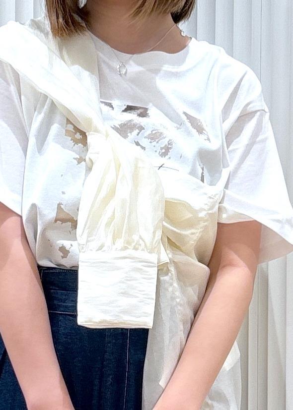 デニム×Tシャツでシンプルになりがちですがブラウスをたすき掛けするだけで物足りなさがなくなります!