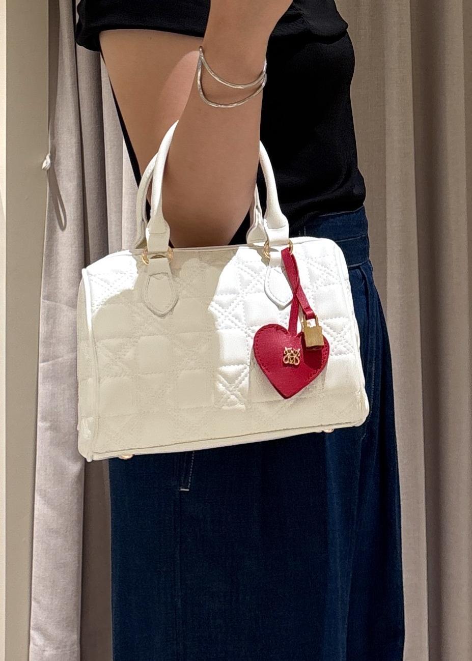 VIS【追加】【2WAY】ハートチャームつきボストンバッグオフホワイト / F¥5,536レビューマチがしっかりあり、チャックも深めにあるので出し入れしやすいです。