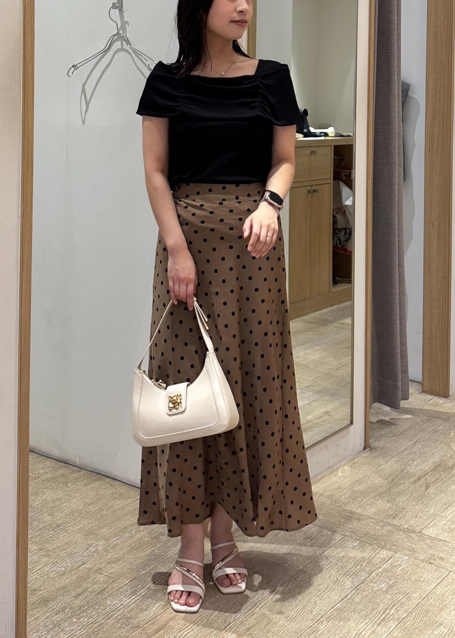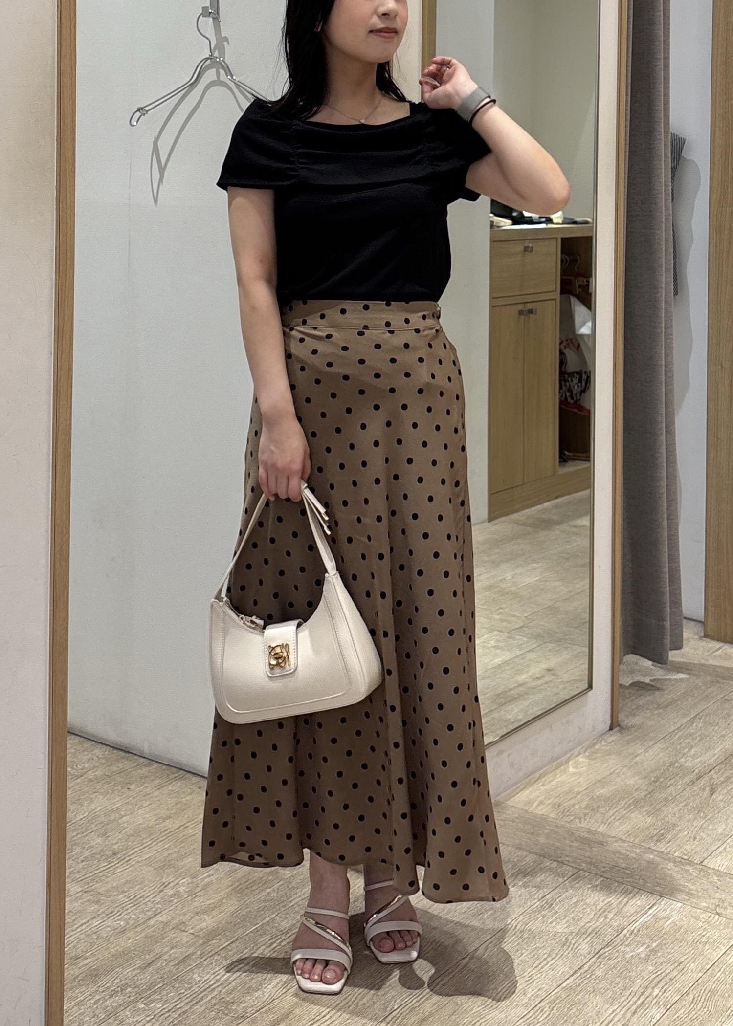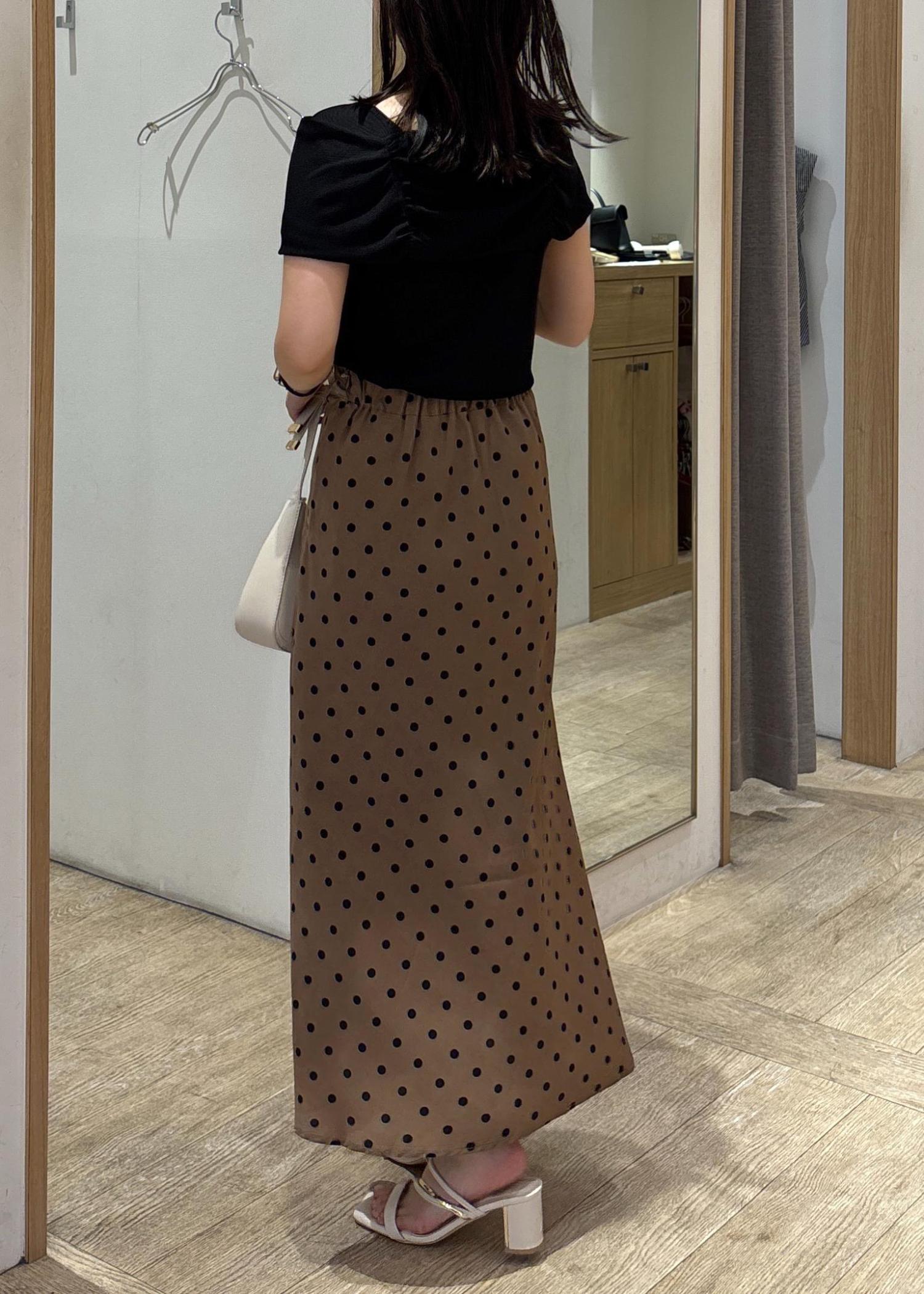 ドット柄でキュートな印象ですが、広がりすぎず大人っぽいシルエット♡