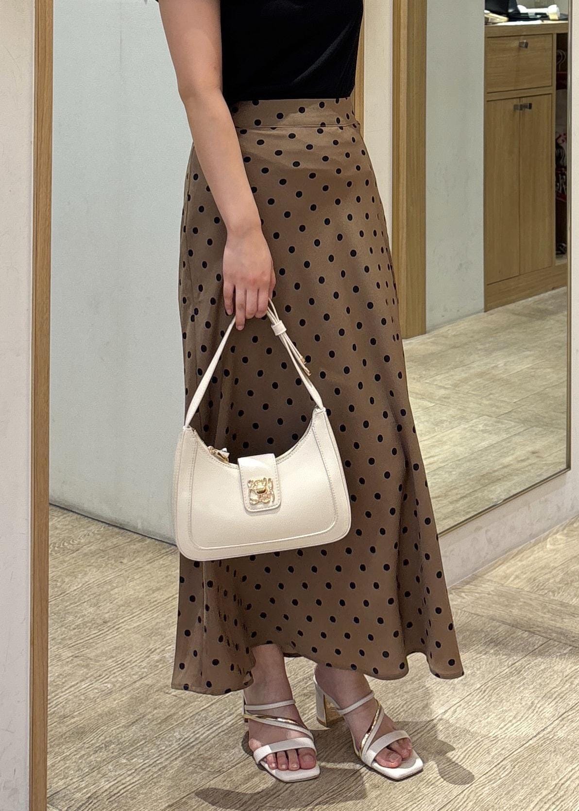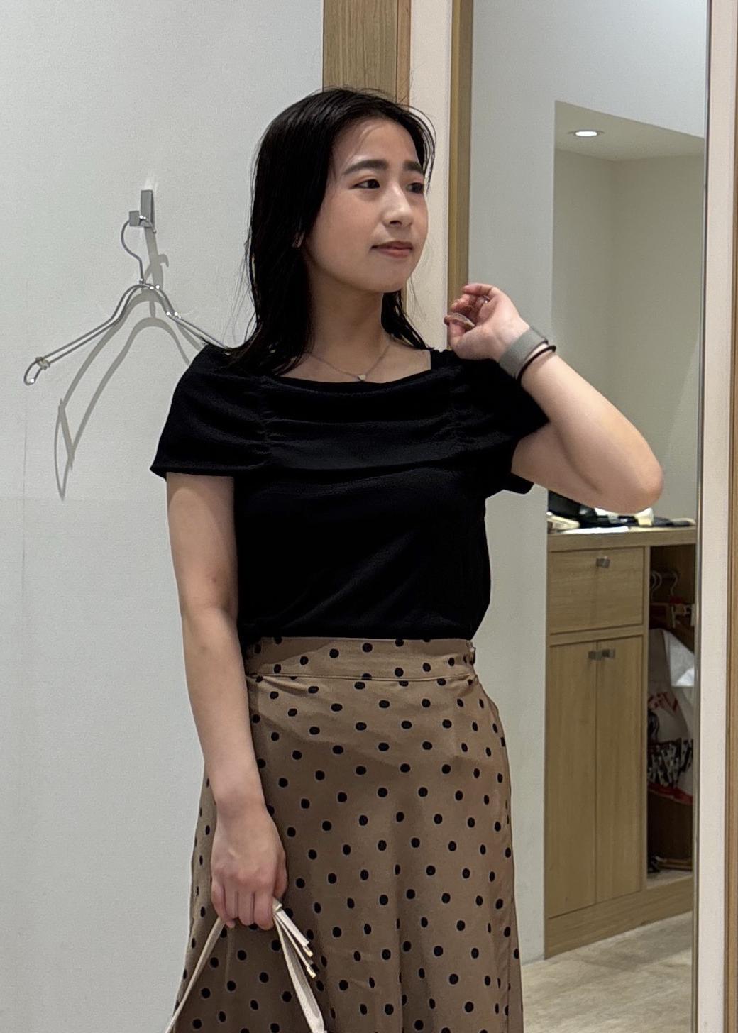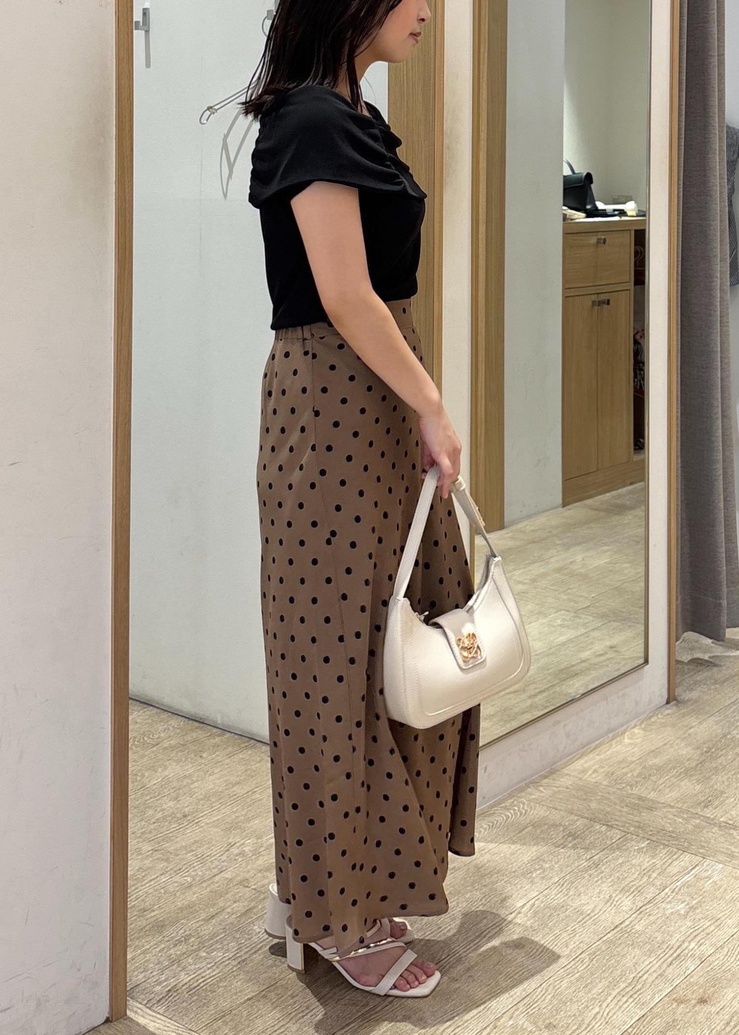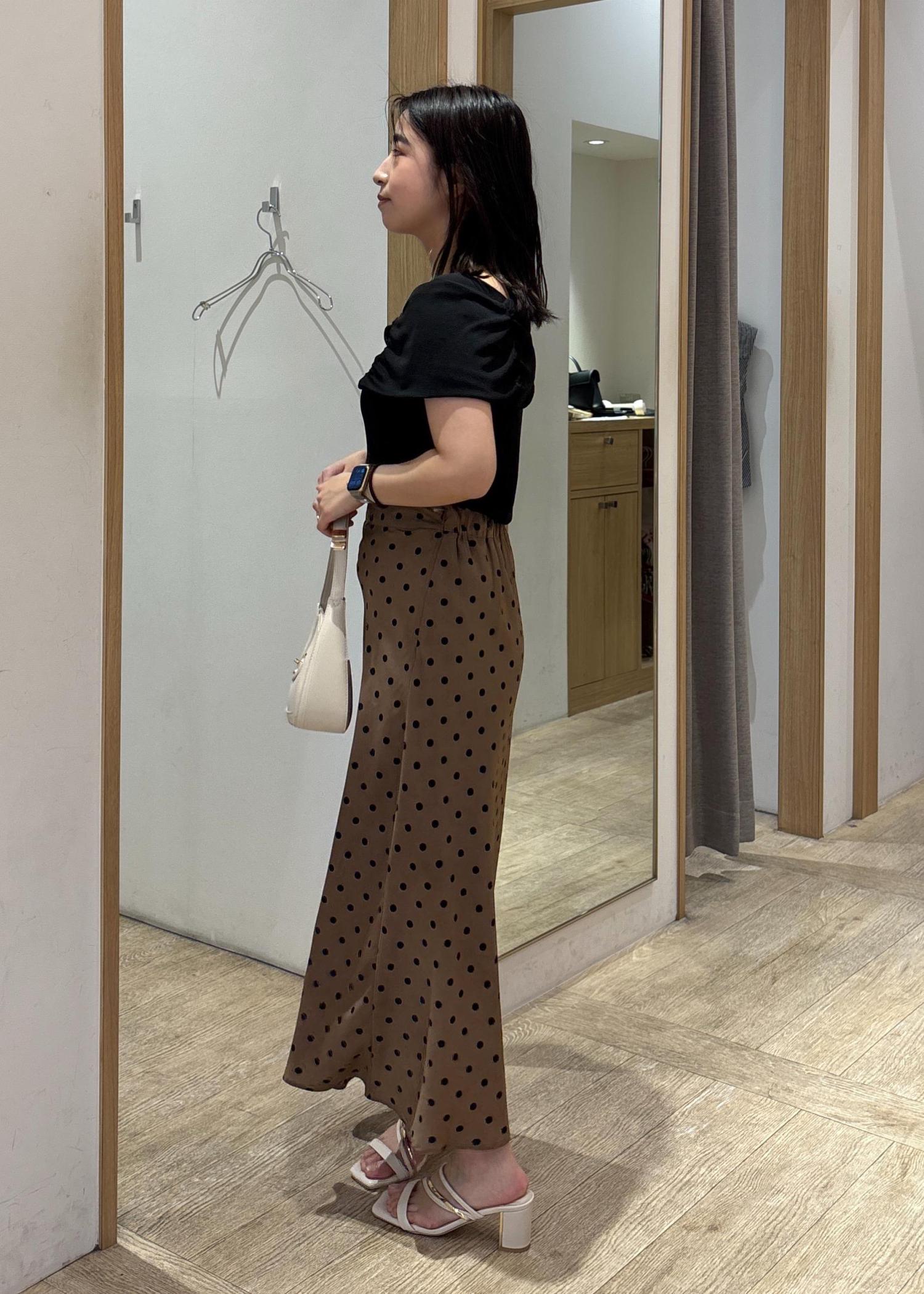 ドット柄でキュートな印象ですが、広がりすぎず大人っぽいシルエット♡