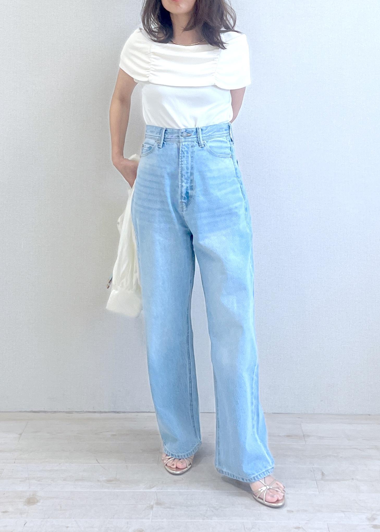 アウトレットVIS【洗える】ハイウエストルーズワイドデニムサックス / S¥4,395レビュー152cmでSサイズ着用して、着丈はペタンコ靴でも床につきませんでした。ハイウエストタイプで脚長効果◎ウエストまわりはややゆとりがありました。大きすぎないセミワイドくらいの太さで、やや丸みのあるシルエットでした。柔らかいデニム素材でとっても楽ちんです。