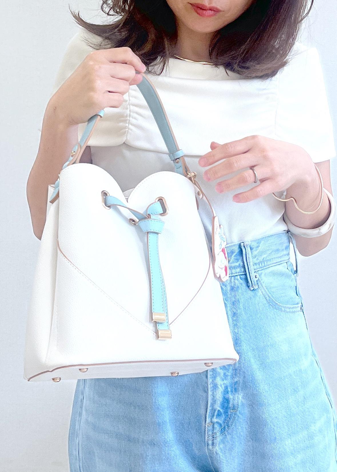 VIS【シナモロール】VIS別注ハートカットバッグ(ミディアム)ホワイト系 / F¥7,909レビュー大人気ハートバッグのシナモロールコラボタイプです!もう、見た目が優勝!カラーも合わせやすく、夏にぴったりな爽やかさ◎荷物もたくさん入れられて、三層にわかれているので使いやすいです。
