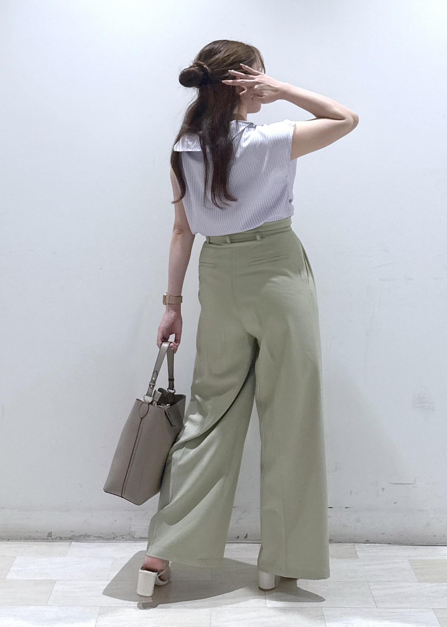 VIS【新色追加】【防シワ/接触冷感】ベルトディテールタックワイドスラックスパンツライトグリーン / M¥6,589レビュー骨格ストレートさん大優勝⭐︎のパンツでハイウエストになっており、シルエットが綺麗なので脚がより長く見えるのでオススメです!冬の時も入荷していましたが、夏のタイプですとこちらはサラッとしていて、接触冷感付きになるのでお仕事用でも普段着としても着られます。157cm/Mサイズを着用していて、少し着丈が長かったのでSでも履けると思います。