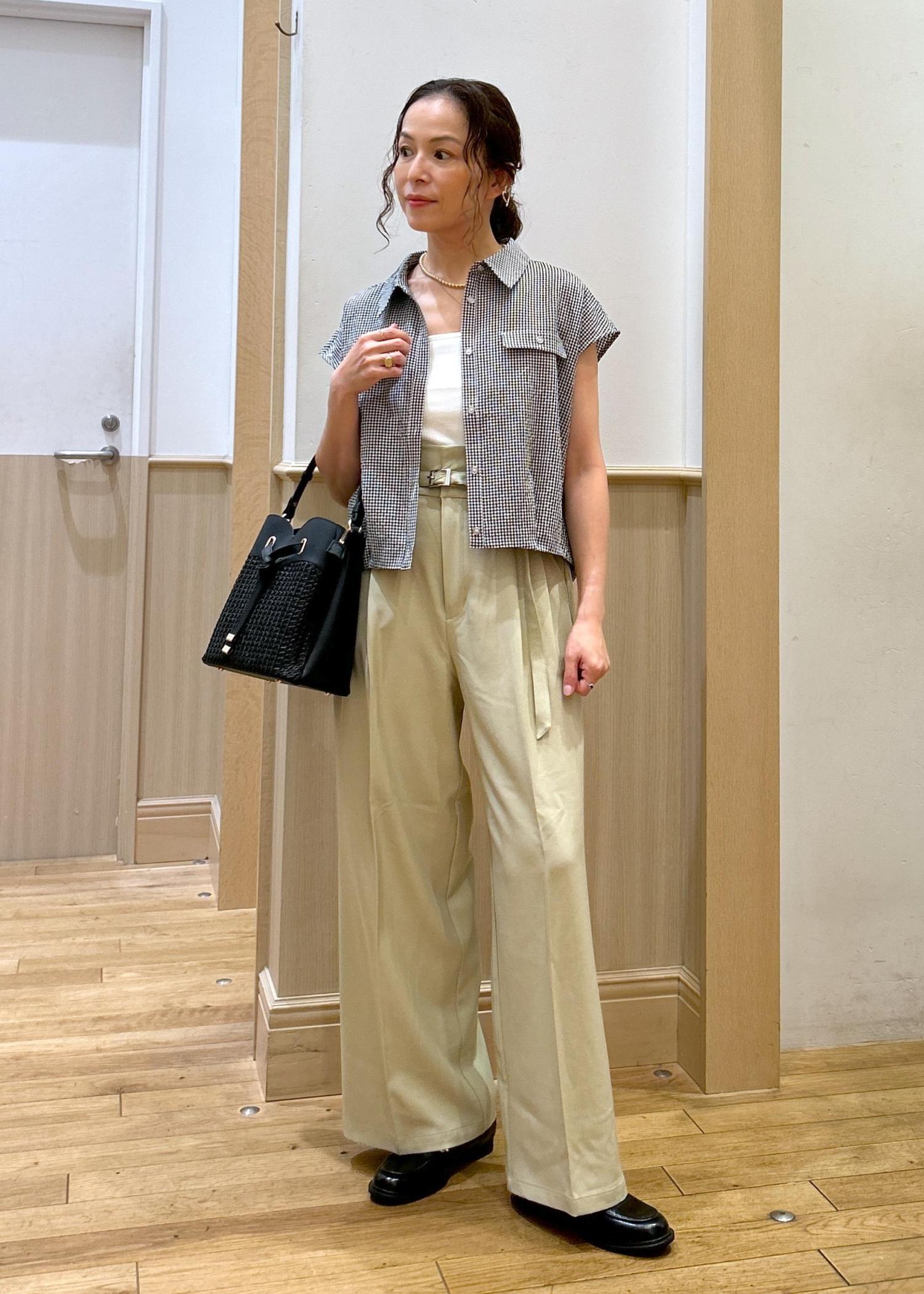 VIS【新色追加】【防シワ/接触冷感】ベルトディテールタックワイドスラックスパンツライトグリーン / S¥6,589レビュー153cmSサイズ着用でかかとギリギリくらいの丈感です。