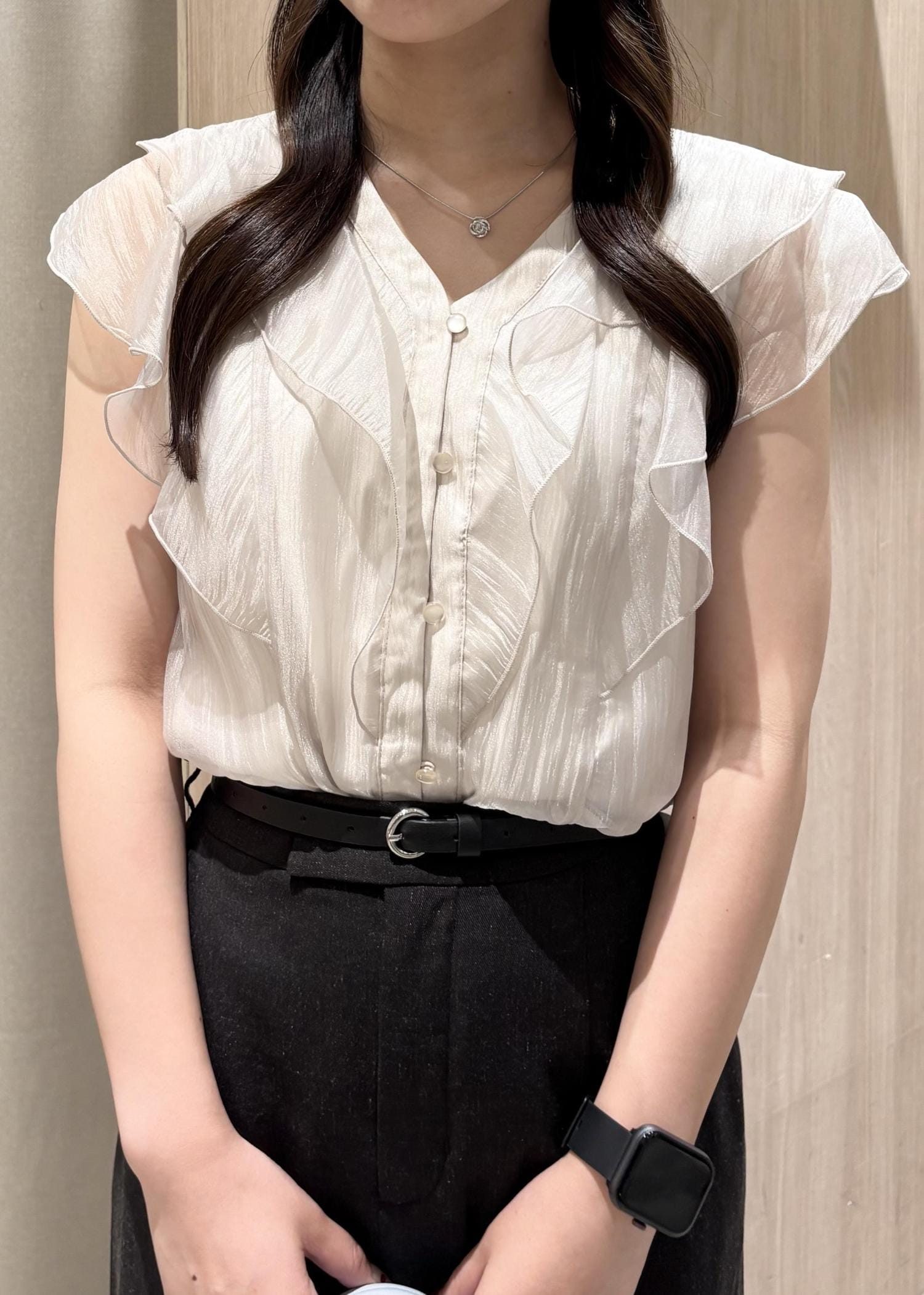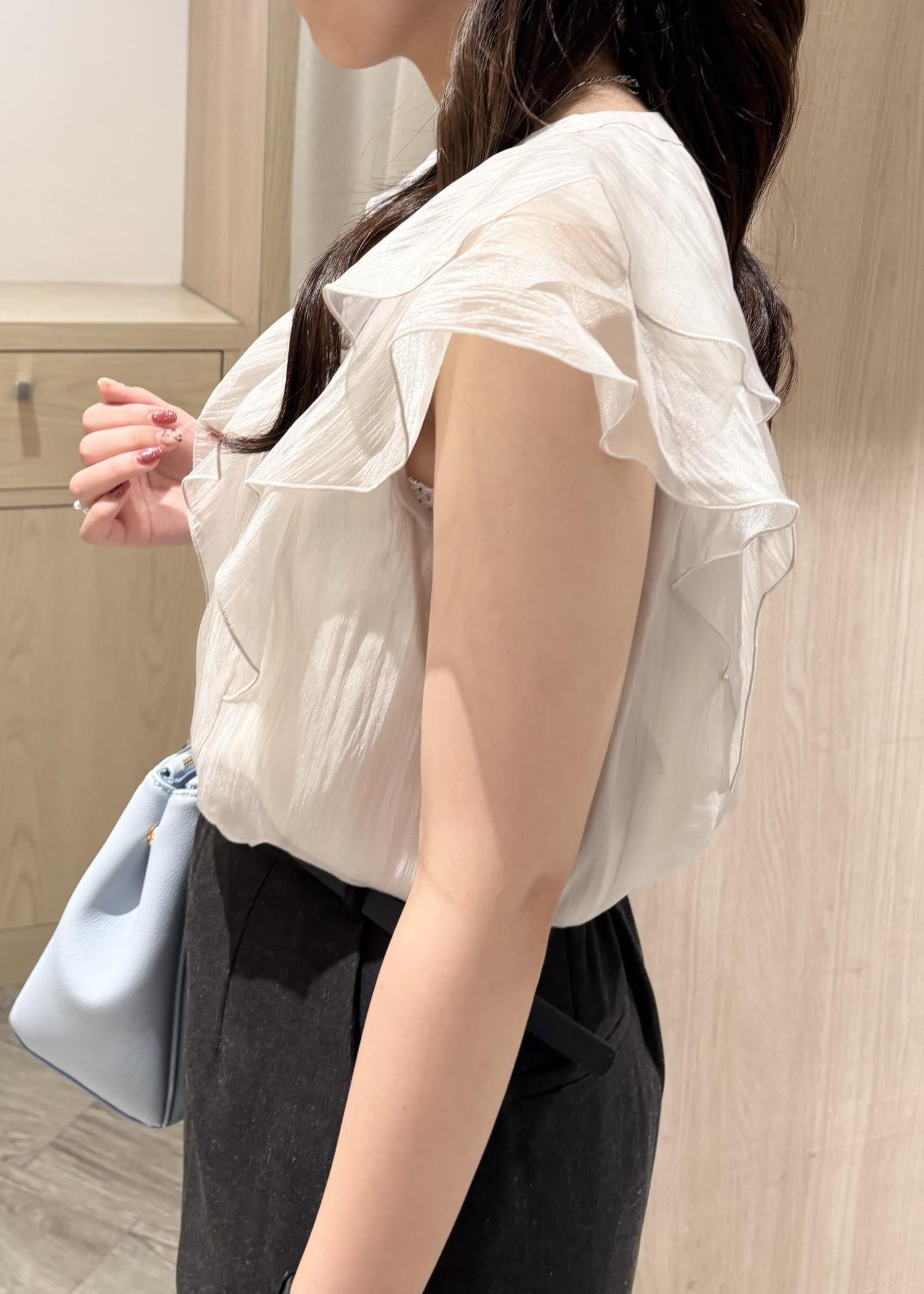 アウトレットVISシアーラッフルフリルブラウス/通勤対応ベージュ / F¥3,842レビュー袖やフロントのフリルがかわいらしいデザインですが、素材は高級感があり、きれいめとしても着用できます。